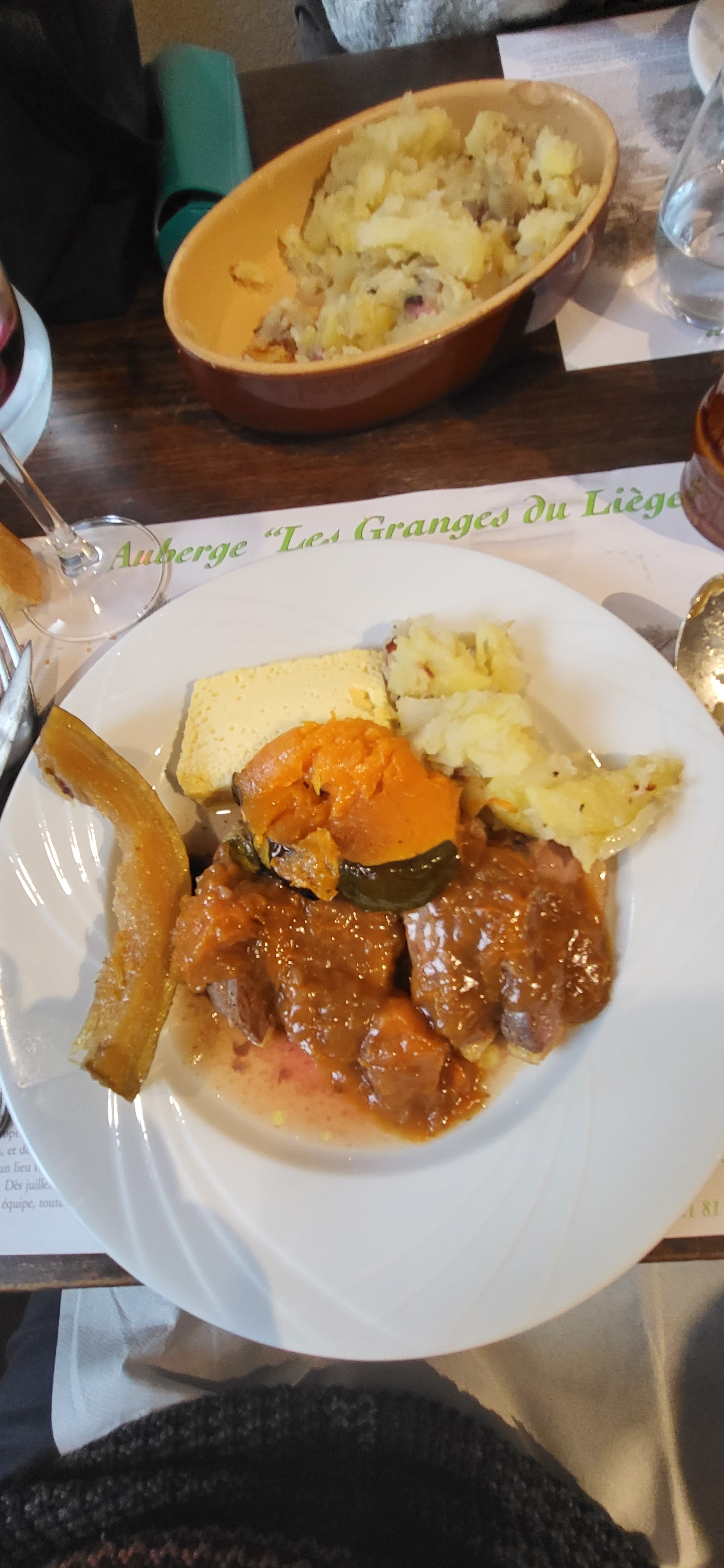 J'ai fêté mon anniversaire fin mars 2017 à l'auberge Les Granges du Liège et j'avais invité 17 personnes de ma famille. J'avais choisi, pour faire plaisir à tous le monde un menu à un peu plus de 30€/personne. Les boissons(apéro, vin + vin pétillant) et le gâteau d'anniversaire n'était pas compris dans les 30€. Je ne vous donne pas le détail du menu, mais je mange mieux dans le restaurant de mon entreprise, le gâteau d'anniversaire banal, d'ailleurs je n'ai pas eu de part car il n'y en avait pas assez. Tous mes invités m'ont dit qu'ils n'avaient pas bien mangé, tout le monde était déçu. La seule chose que tout le monde a apprécié était le fait que l'on se retrouve en famille, car nous sommes tous éloignés. Dommage car le cadre est magnifique. Plus jamais je ne renouvellerai cette expérience.