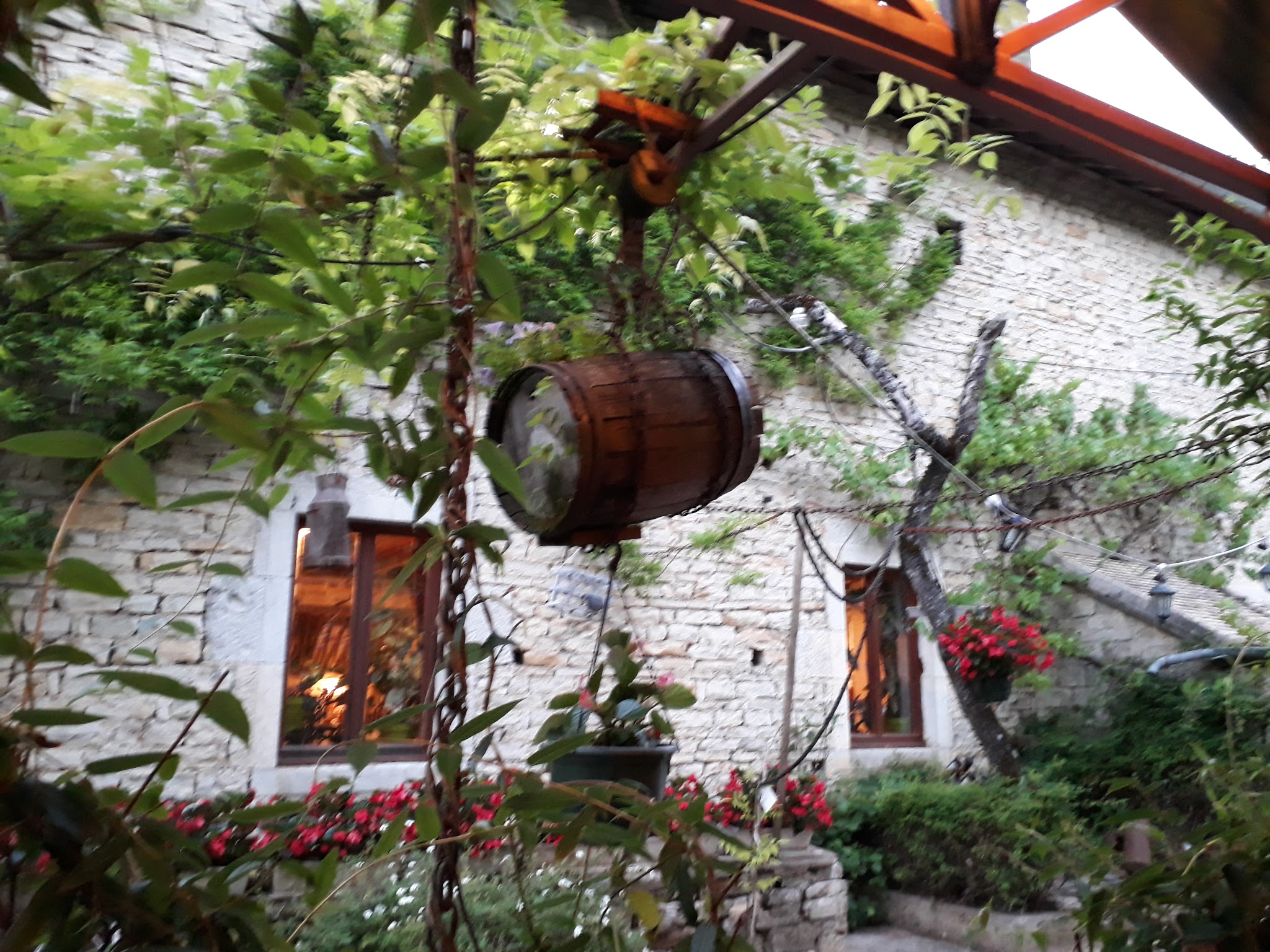 Cadre très agréable, calme, semblable a une brocante paysanne a ciel ouvert. Repas de bonne qualité, copieux, plats traditionnels. Agréable un soir d'été !