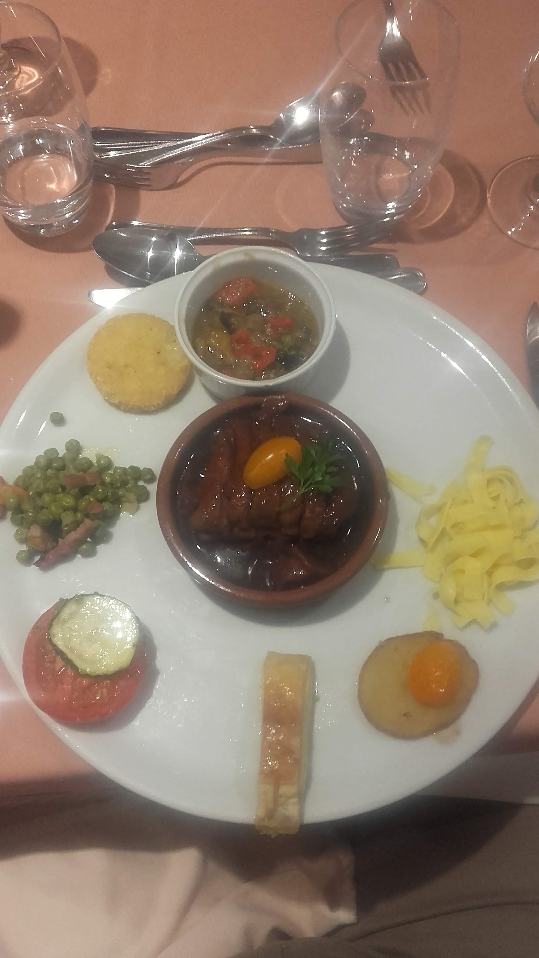 Restaurant plutôt agréable avec un personnel accueillant . Une cuisine principalement du terroir avec des menus à des tarifs relativement raisonnable. Les plats sont plutôt copieux voir un peu trop pour entrée + plat + dessert. Dommage pour cette multitude d accompagnement. J ai commandé une viande ( très bonne cuisson) mais accompagné d un risotto, de frites, de pâtes froides, d une aubergine, d un gratin de choux fleur et d un rösti 😳