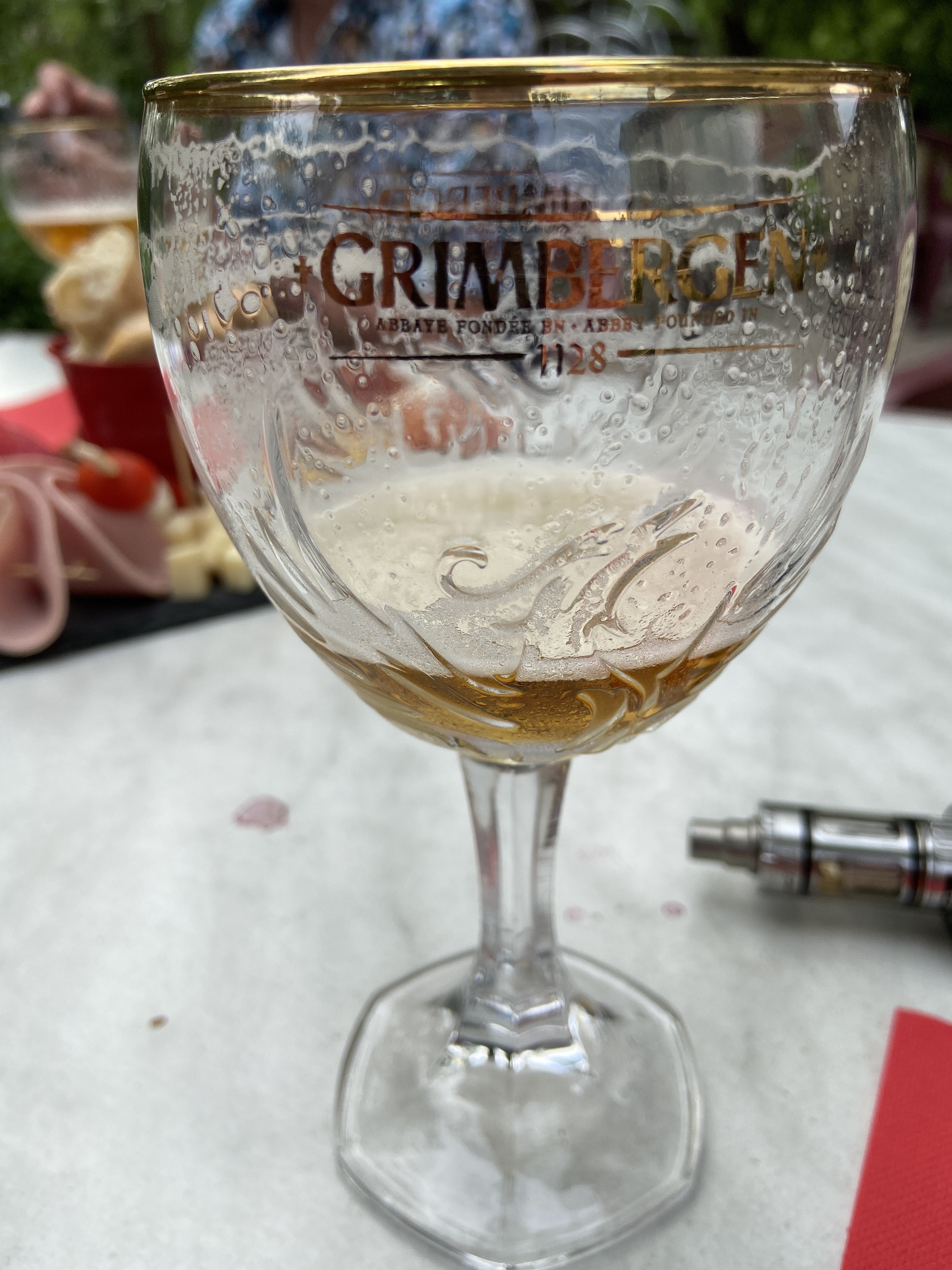 Belle occasion de prendre une collation et un verre. Terrasse en bord de rivière. La Planche de Apéro était très riche en jambon régional et autres gourmandises. Après une balade à travers les champs de bataille de l'Argonne, rincez la poussière entre vos dents avec un Grimbergen du robinet.