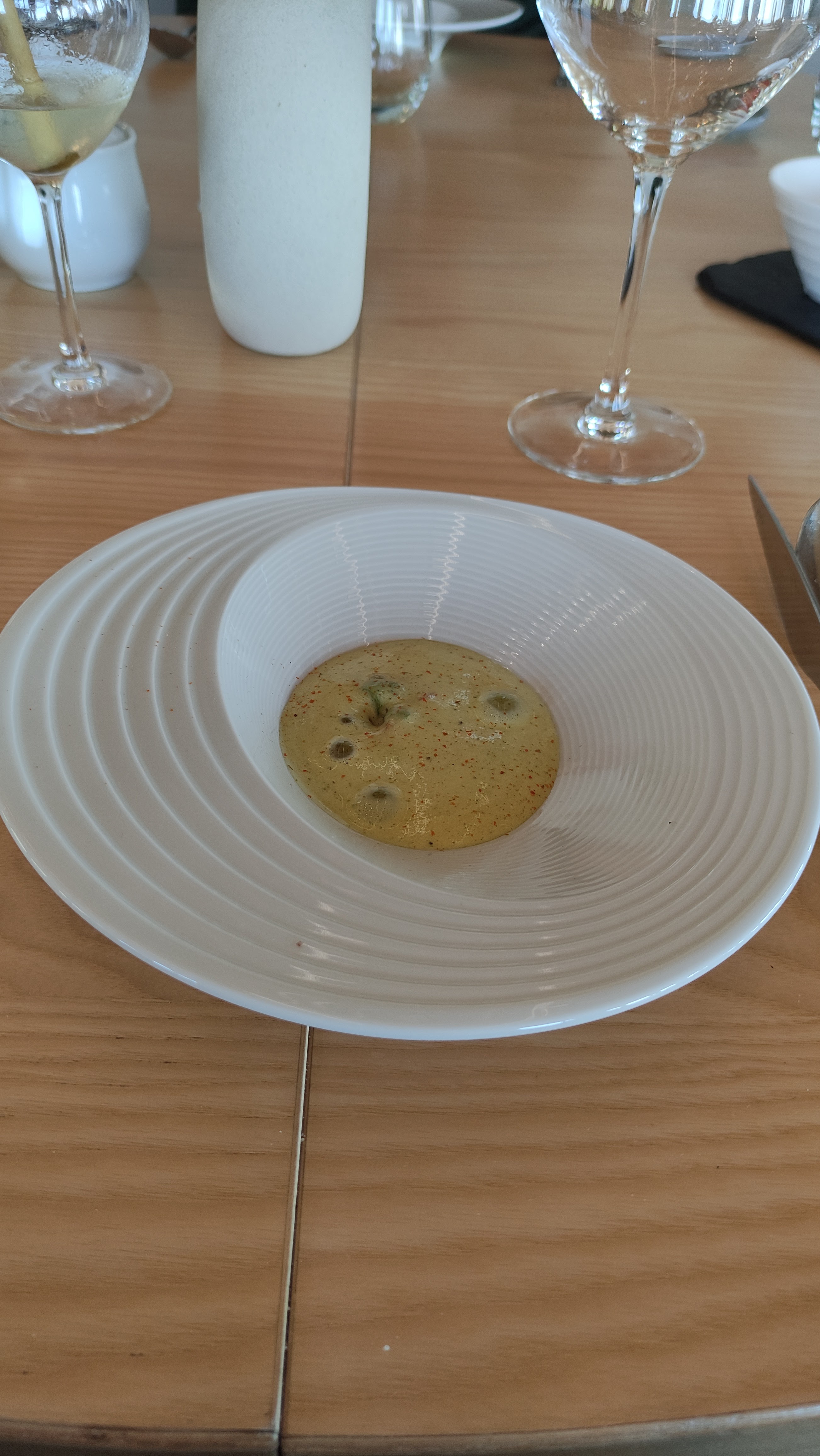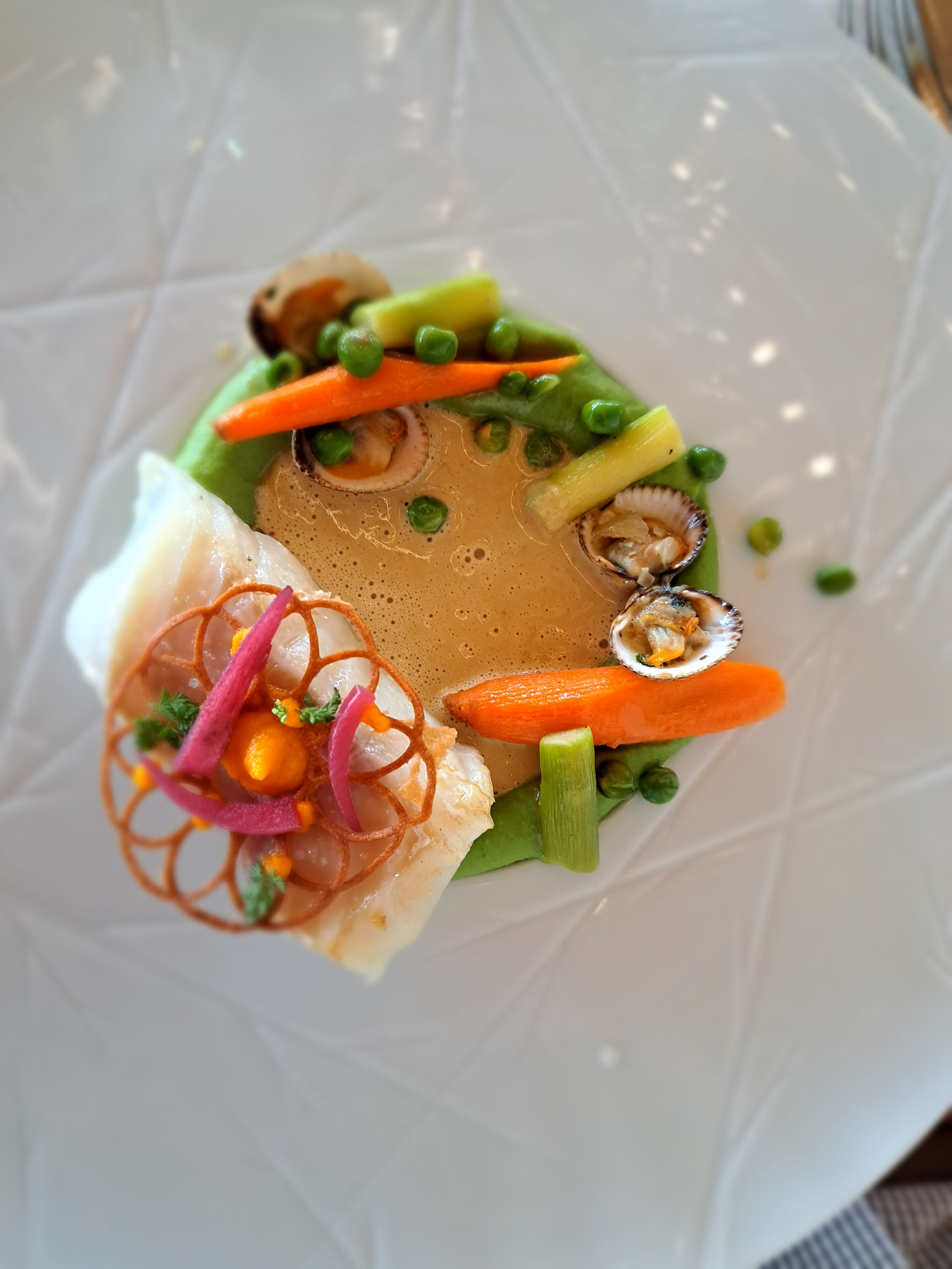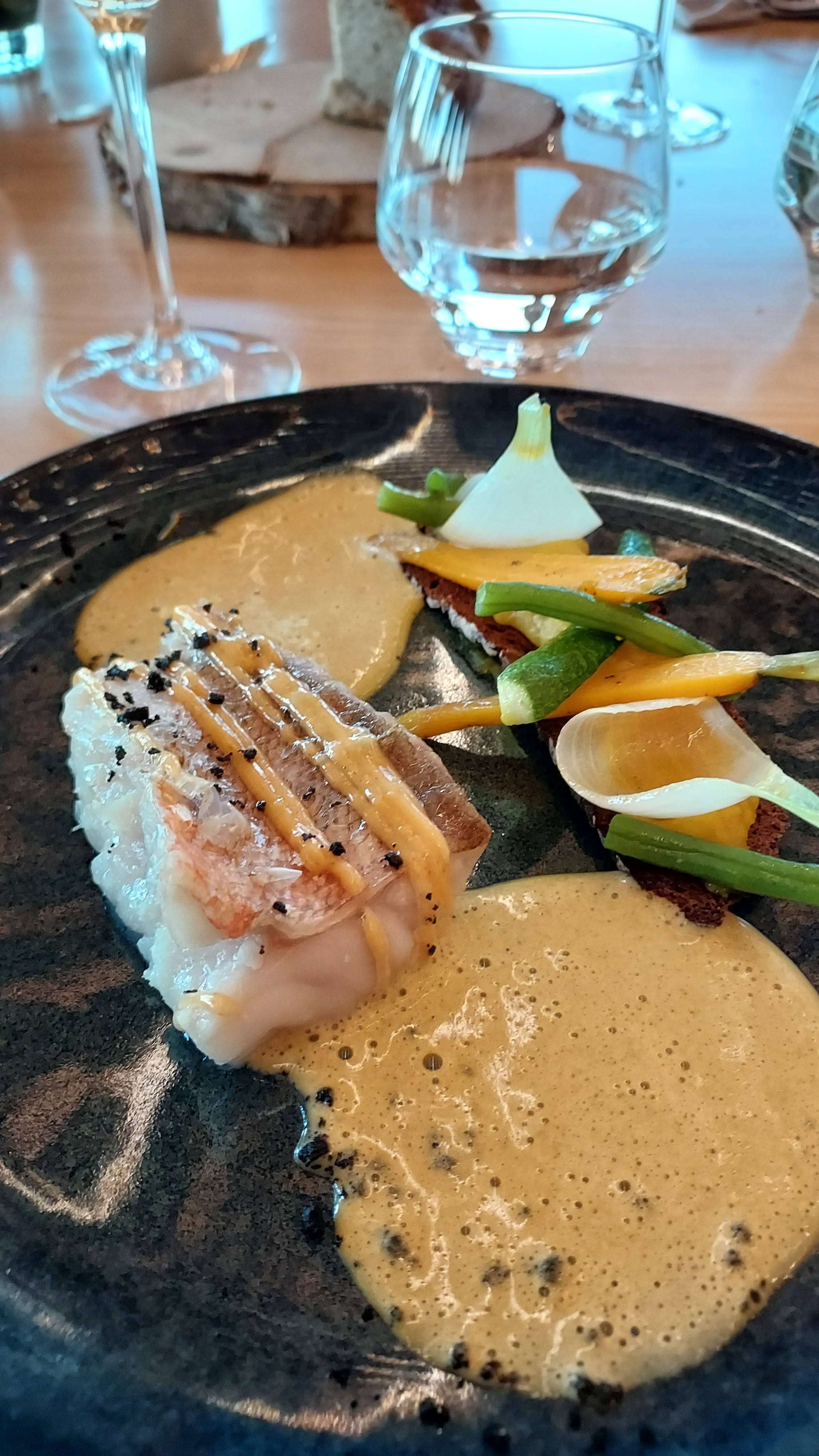 Repas excellent du début à la fin.une association de saveurs et textures très originales .Du personnel très sympathique et tout cela dans un cadre si paisible. Bravo à toute l équipe .merci pour ce bon moment que vous nous faites partager.