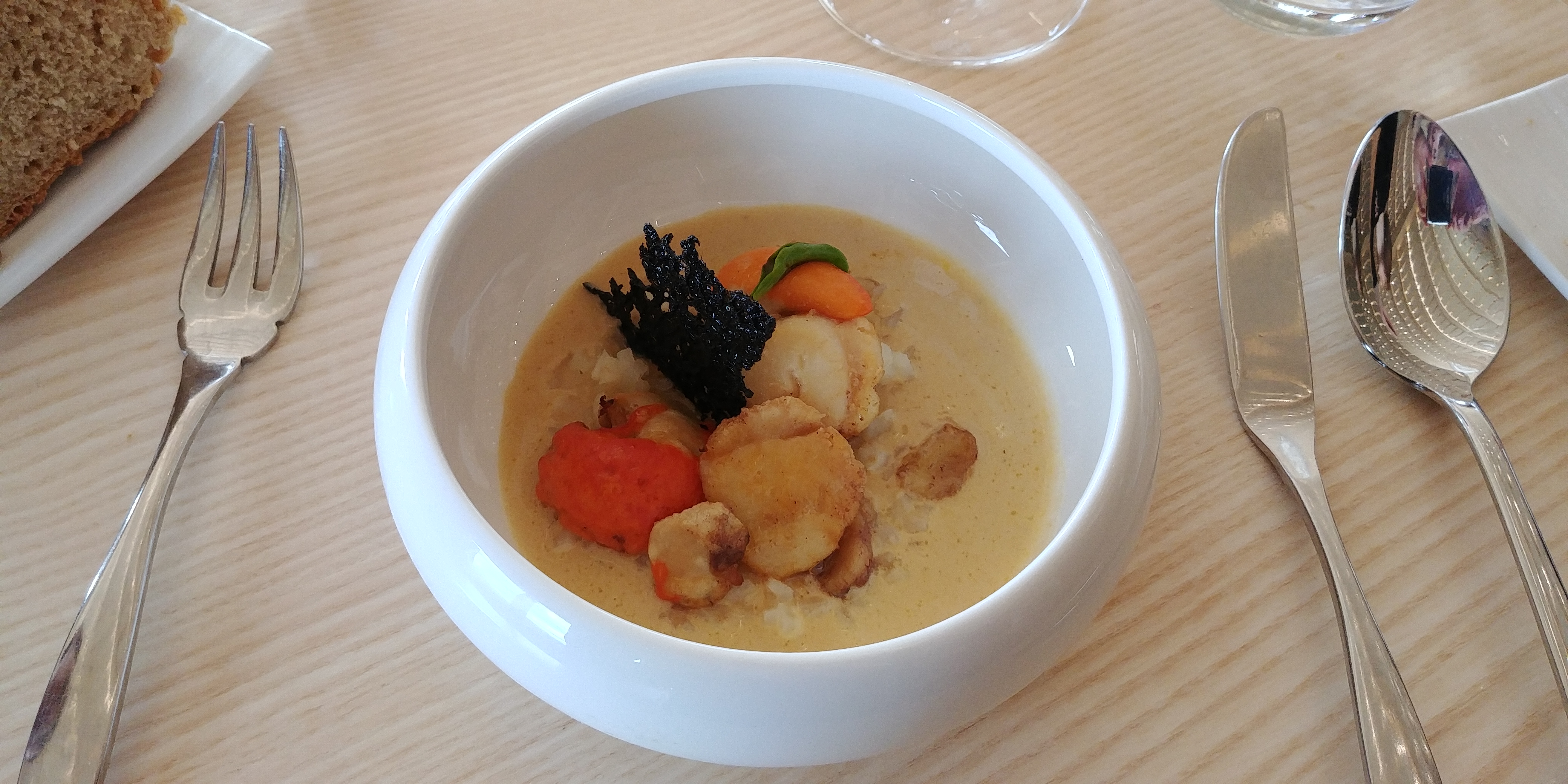 Très bon accueil très joli cadre Puis mises en bouches divines On retrouve de bons produits dans l assiette avec de bonne découverte d association avec le saumon l émulsion de café Superbe Des assiettes aussi belles que bonnes Les serveurs efficaces et discret au top bon conseils également en vins Une très bonne table qualité prix MERCI très bon moment à refaire très vite