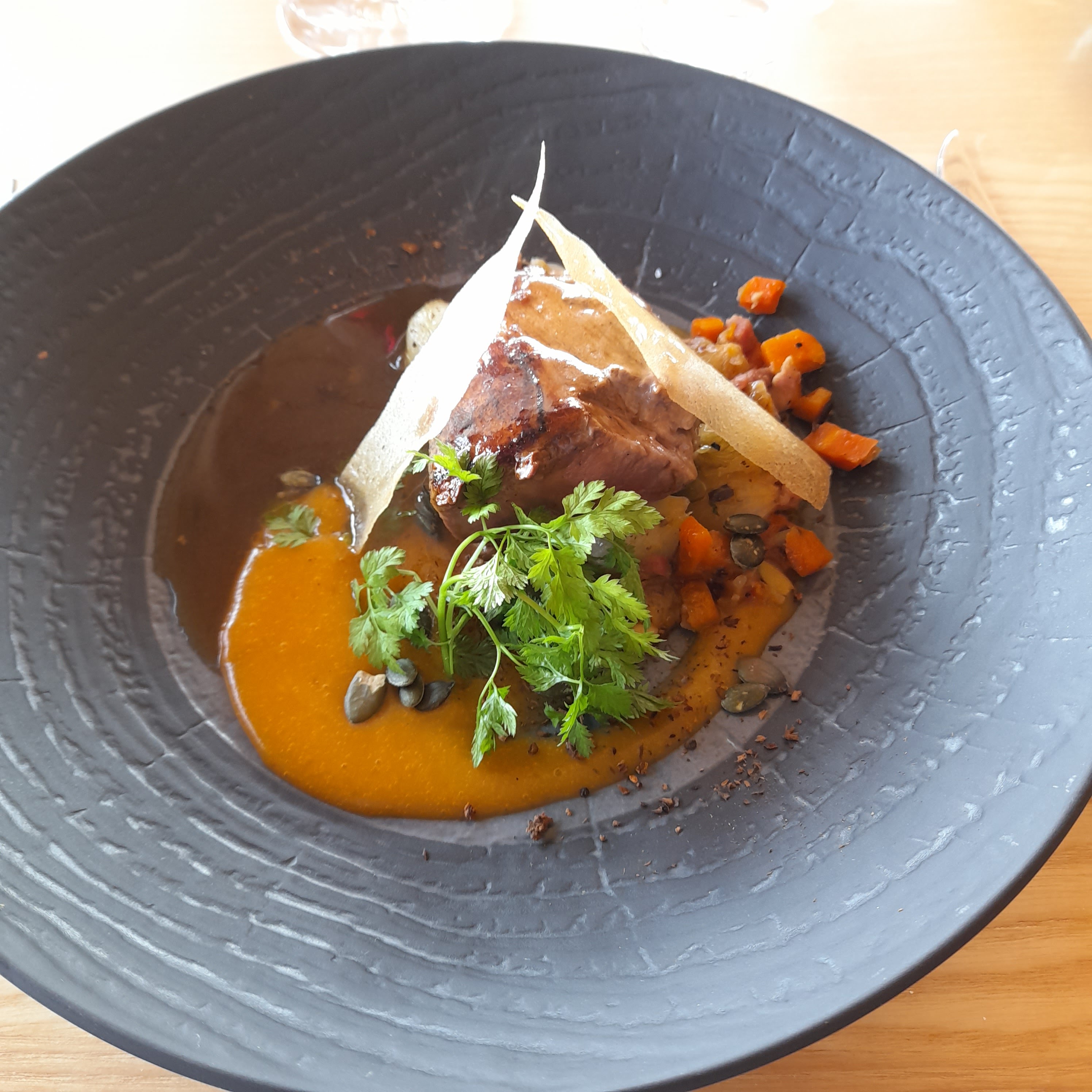 Tres belle salle bien insonorisée au menu 7 plats très belle façon de découvrir principalement des produits locaux très bonne cuisine,personnel très agréable et professionnel