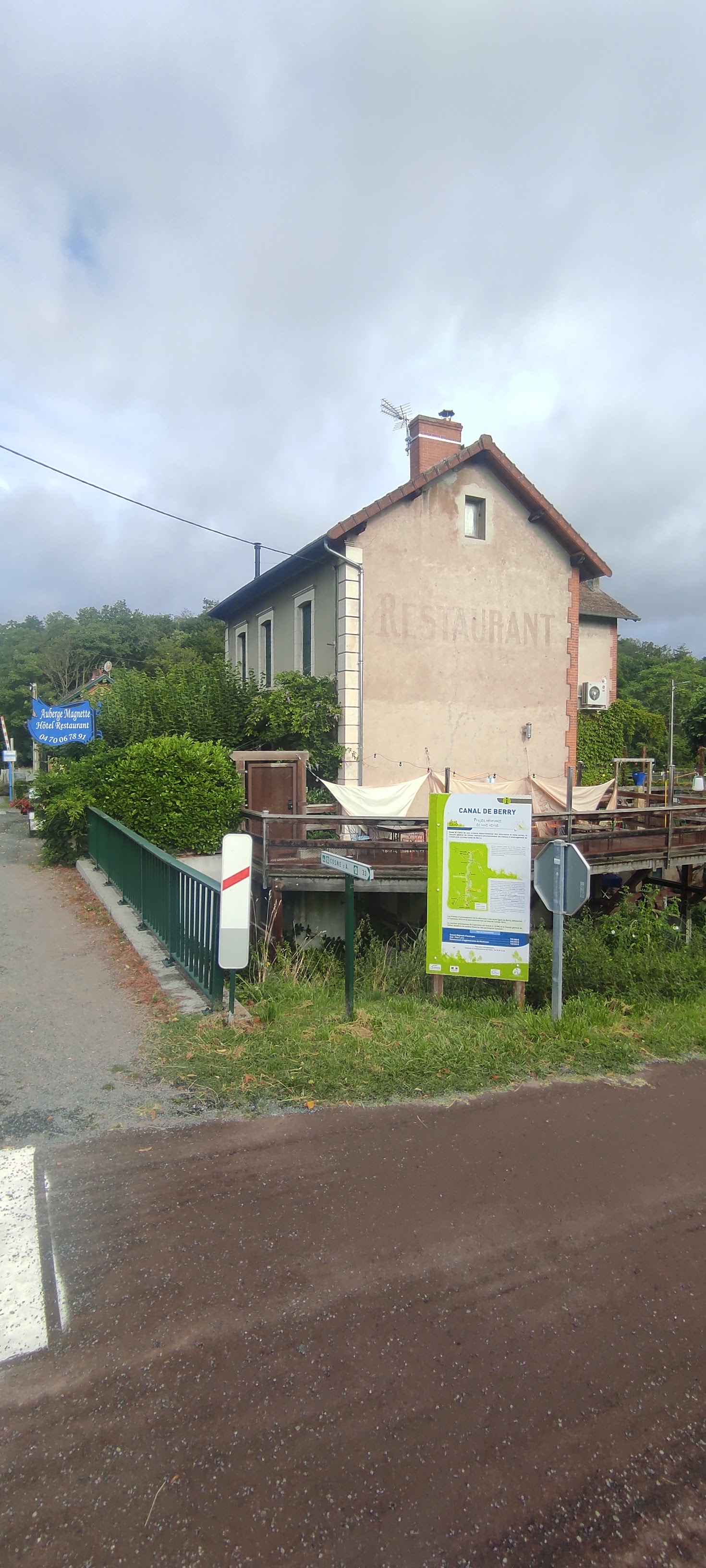 Tenue par un couple tout à fait charmant. Au fil du canal de Berry. Cuisine originale et simple sous une tonnelle qui protège du soleil et du mauvais temps. C'est très agréable