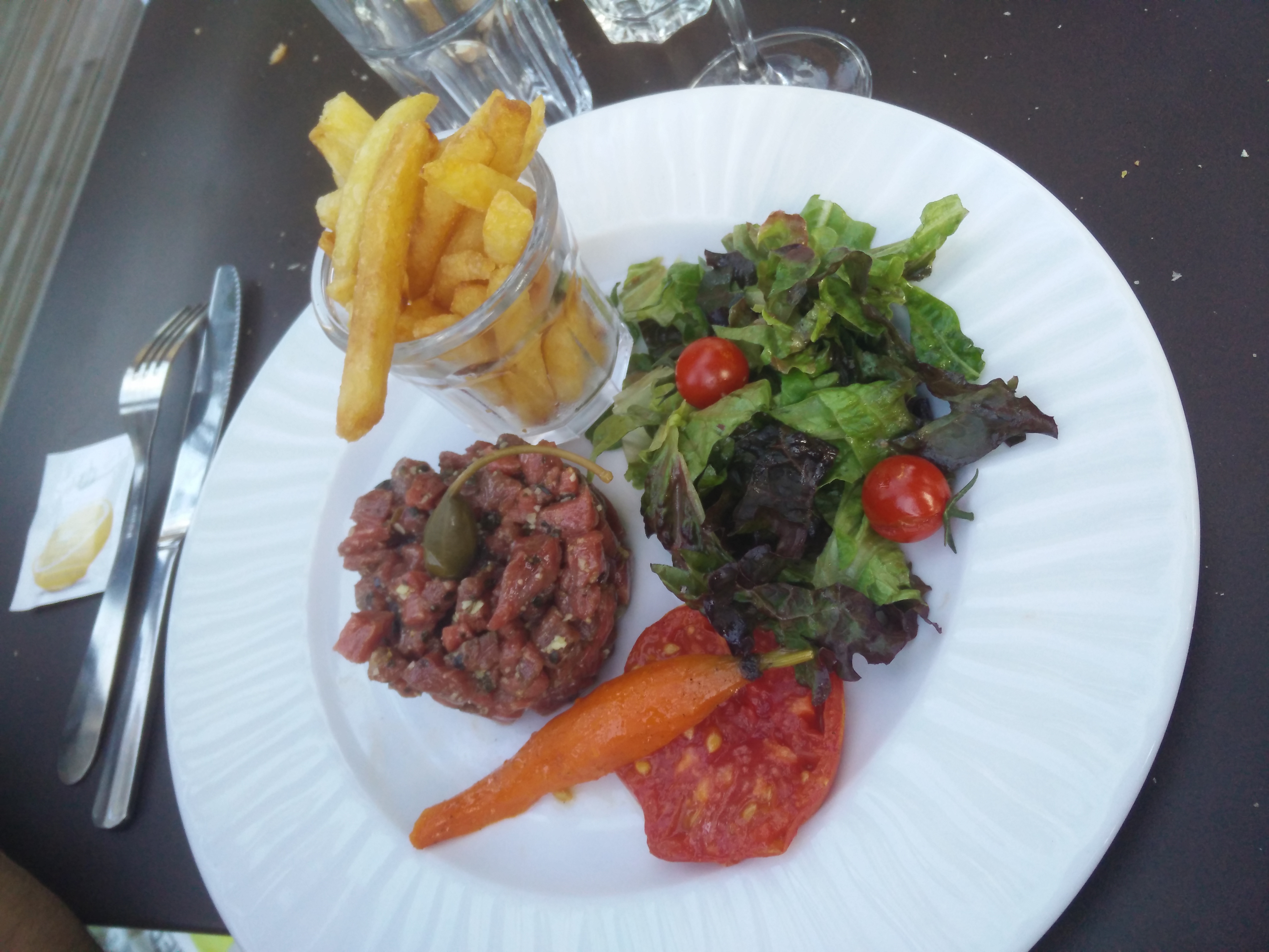 Très moyen , repas bon mes sans saveur avec des prix assez chère ,: a deux 80 euros . Accueil et service sans plus , attention la terrasse et non fumeur donc on vous invite à aller dans la rue . Le verre de vin a 8 euros et le reste suit si encore sa vaut le prix . Conclusion . Restaurant que l on a fait il y a 12 ans où on ces régalé avec de la bonne fritures et prix correct , a ce jour il y a de la friture effectivement avec des cuisse de grenouille ( environ 15 ) pour 18 euros sans saveur . Dommage ,et déçu , les toiles d araignée pour être enlevée dans la salle.