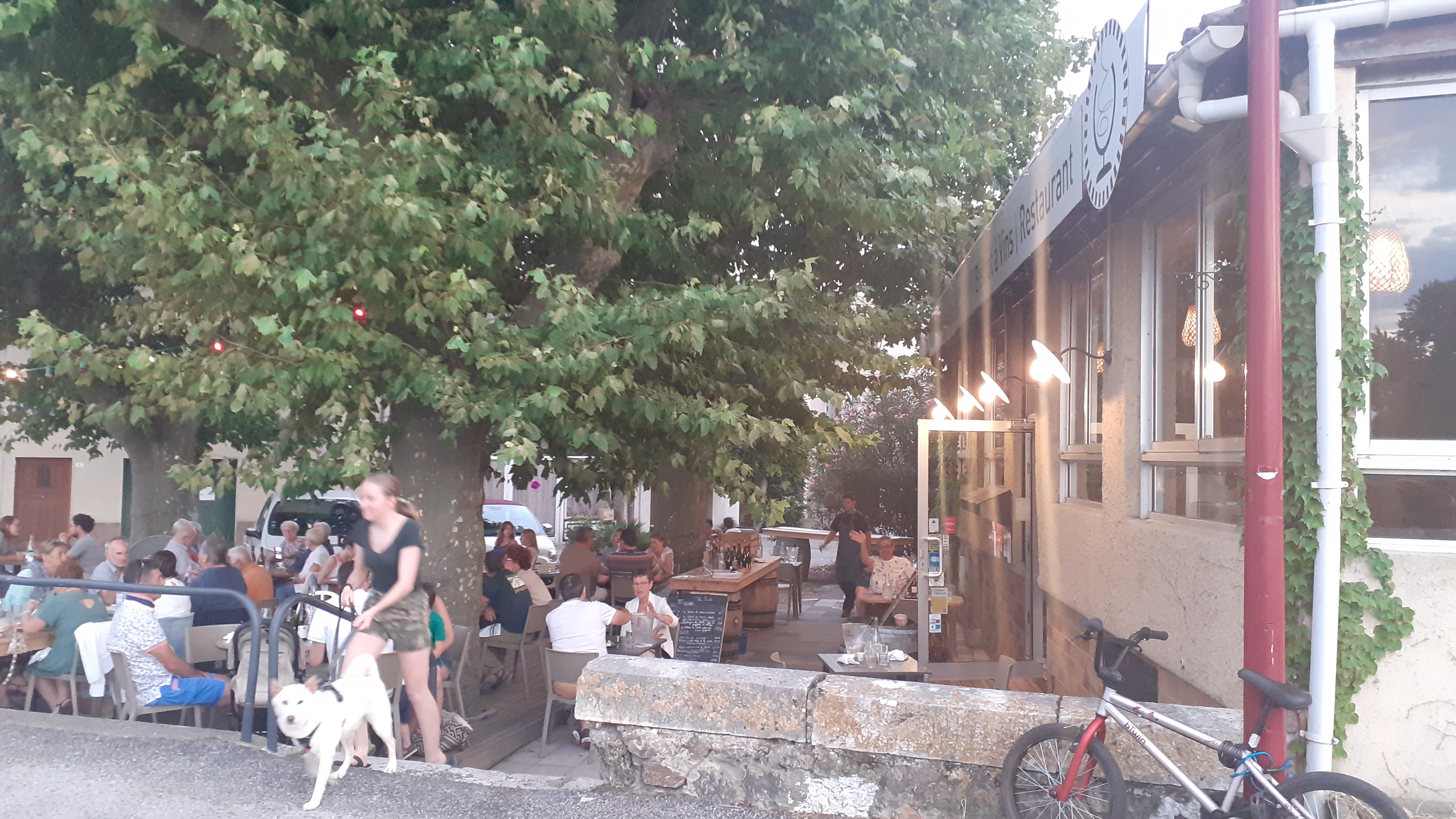 Jolie et délicieuse pause sur la terrasse de l Auberge lors d une balade à vélo. Nous nous sommes régalés d un St Joseph et d une belle assiette de friture, notamment.