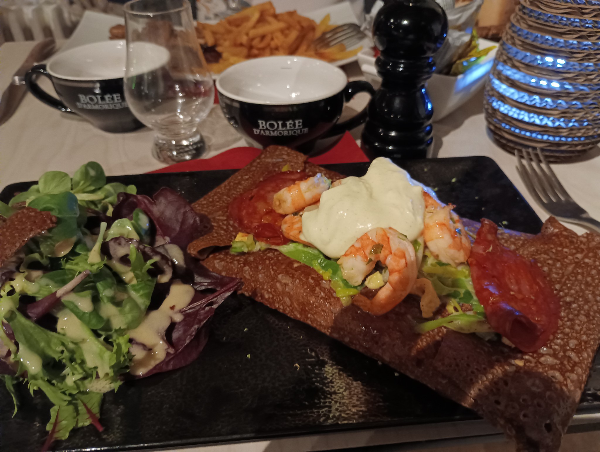 Incontournable dans la région. Juste excellent. N’hésitez pas. Ici galette fondue de poireaux, haddock et œuf. 👍