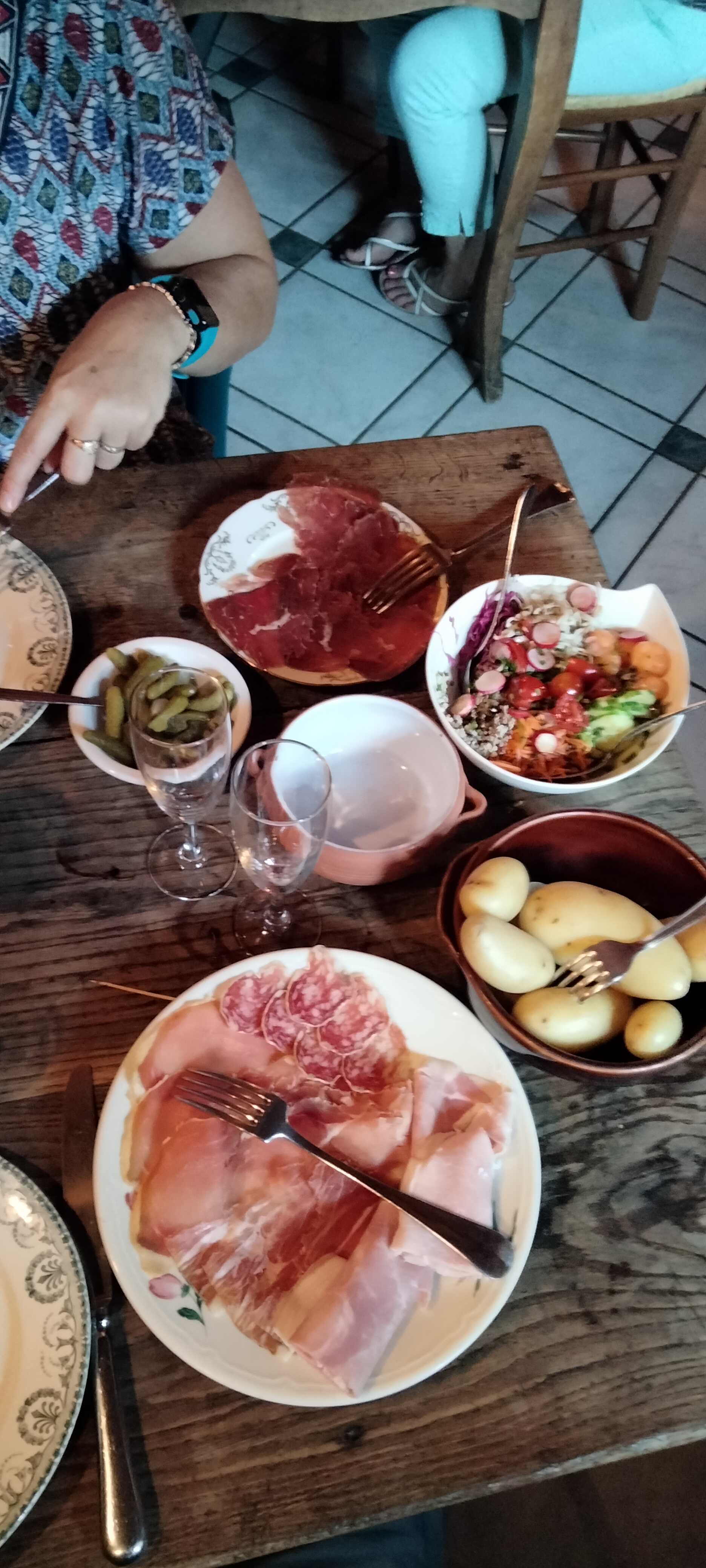 Auberge du traquenard et de l'hypocrisie. Pourquoi ? 1/ Après avoir discuté avec ce qui nous semblait être la directrice des lieux et lui avoir fait son éloge par les kilomètres qu'elle fait pour servir une raclette à volonté (au moins 10 allers retours), celle ci c'est permise d'aller raconter à ses amis juste à côté notre remarque et d'en rire regard appuyé de méchanceté 2/Des assiettes, certes fournies mais trop de crumble sur la viande dont on ne sait plus trop si c'est de l'agneau comme commandé ou du porc 3/un serveur inattentionne et peu concerné par son travail a shooté dans un parasol sans même s'excuser de nous avoir effrayé 4/une facture qui explose sans notre attention avec un menu en plus, comme ça (nous n'avons pas fait exprès, non). Bref un repas d'anniversaire pas très agréable alors on prend sur soi.
