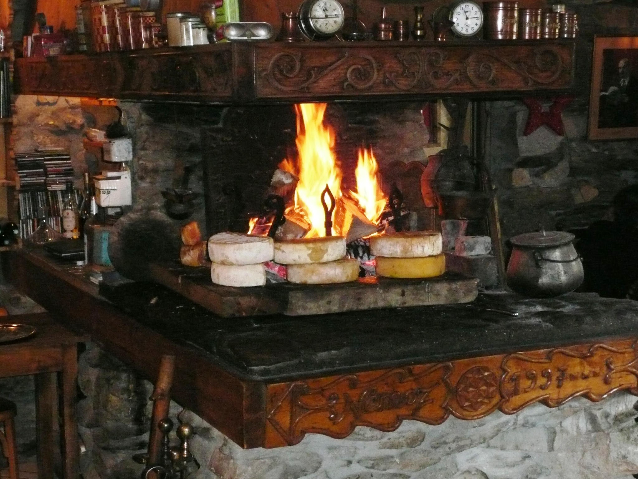 Cadre chaleureux et belle cheminée pour une sympathique soirée montagnarde. Repas fromages pour Madame : salade de fromage de chèvre chaud suivie d'une tartiflette. Croustillant de reblochon et gigot d'agneau crozet haricots vert pour moi. Menus copieux et finement préparés. Nous nous sommes régalés.
