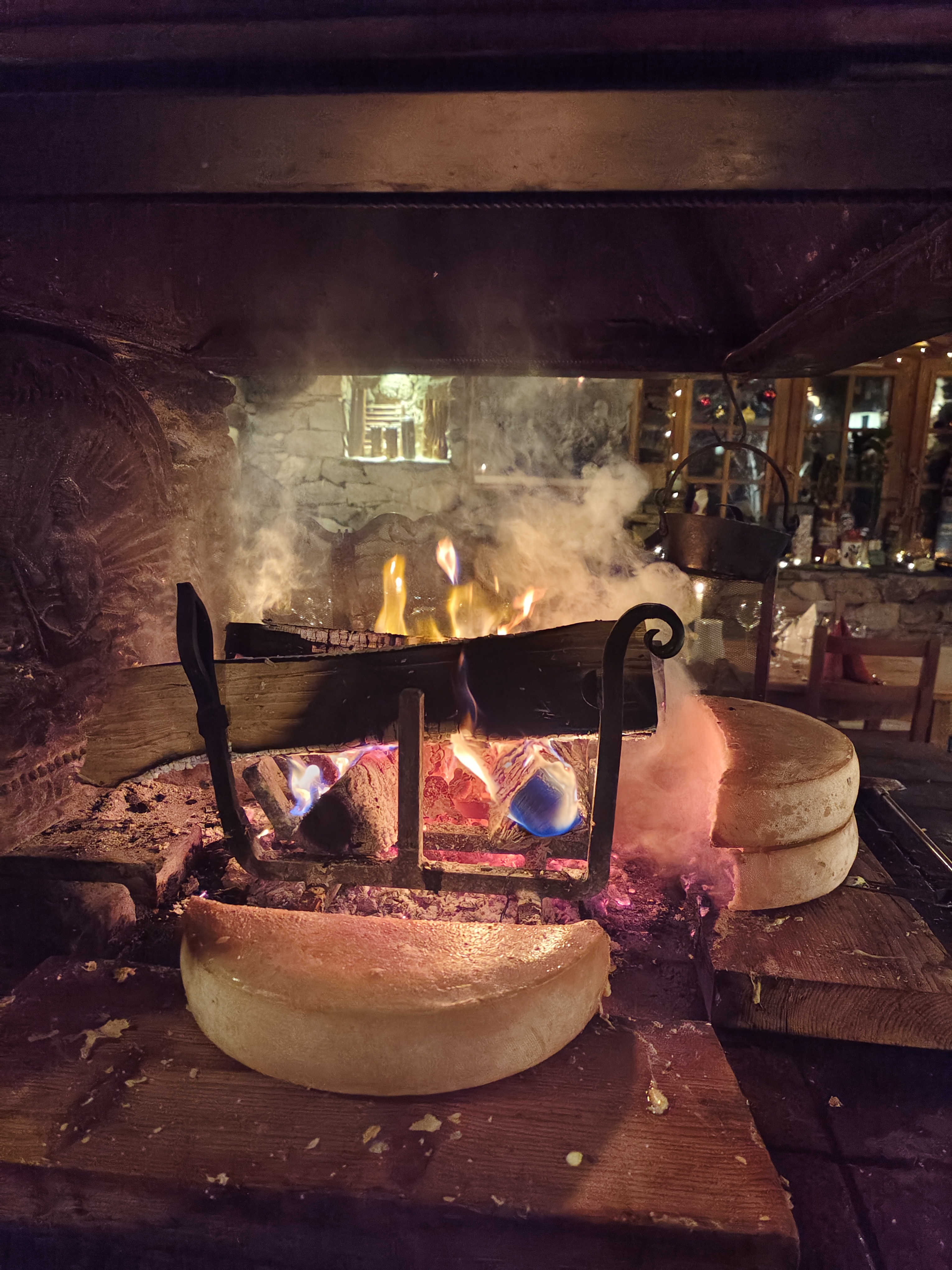 Décor atypique et chaleureux. Une raclette bien coulante fumé avec le feu de bois. On s'est régalé, on repart conquis par le lieu, le service et le repas Merci pour ce moment convivial