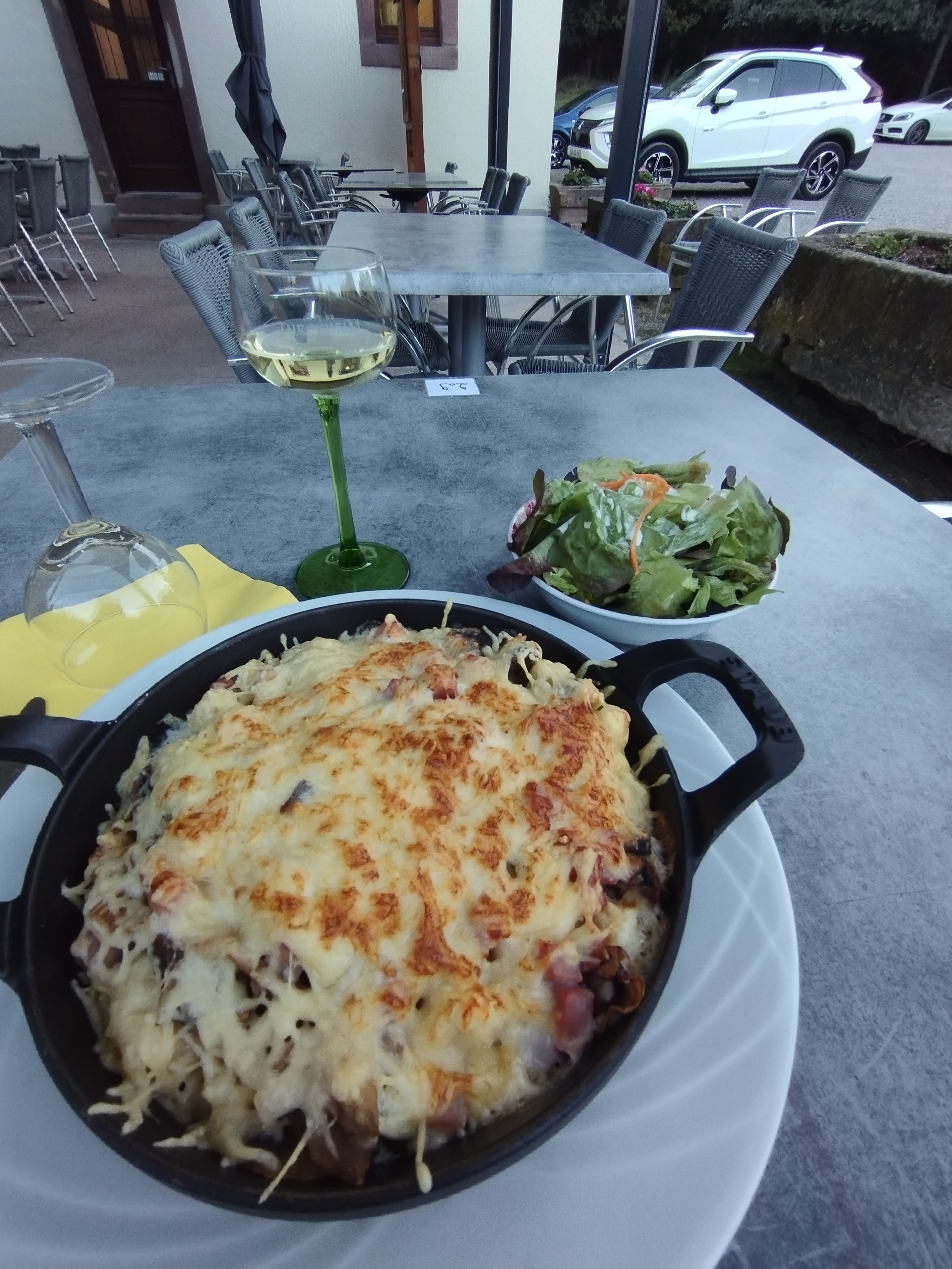 De passage dans la région, j'ai découvert cette auberge grâce au chemin de randonnée partant du Camping Les Deux Hohnack. Le personnel est agréable et serviable. Ils m'ont très bien conseillé pour choisir mon vin et mon plat, j'ai goûté au gratin de spaetzle. Un plat très bon et en grande quantité. J'ai été tellement agréablement surprise par le goût et le prix, que j'ai décidé d'y manger tout les soirs de mon séjour ! Deuxième soir, le bouché à la reine m'a été conseillé, délicieux ! Je regrette de séjourner seulement deux nuits au camping, j'aurai voulu essayer plus de plat ! Je remercie toute l'équipe de l'auberge et surtout le cuisinier. Des plats fait maison, un beau cadre, je recommande fortement !! PS: gros plus pour moi, chien accepté !