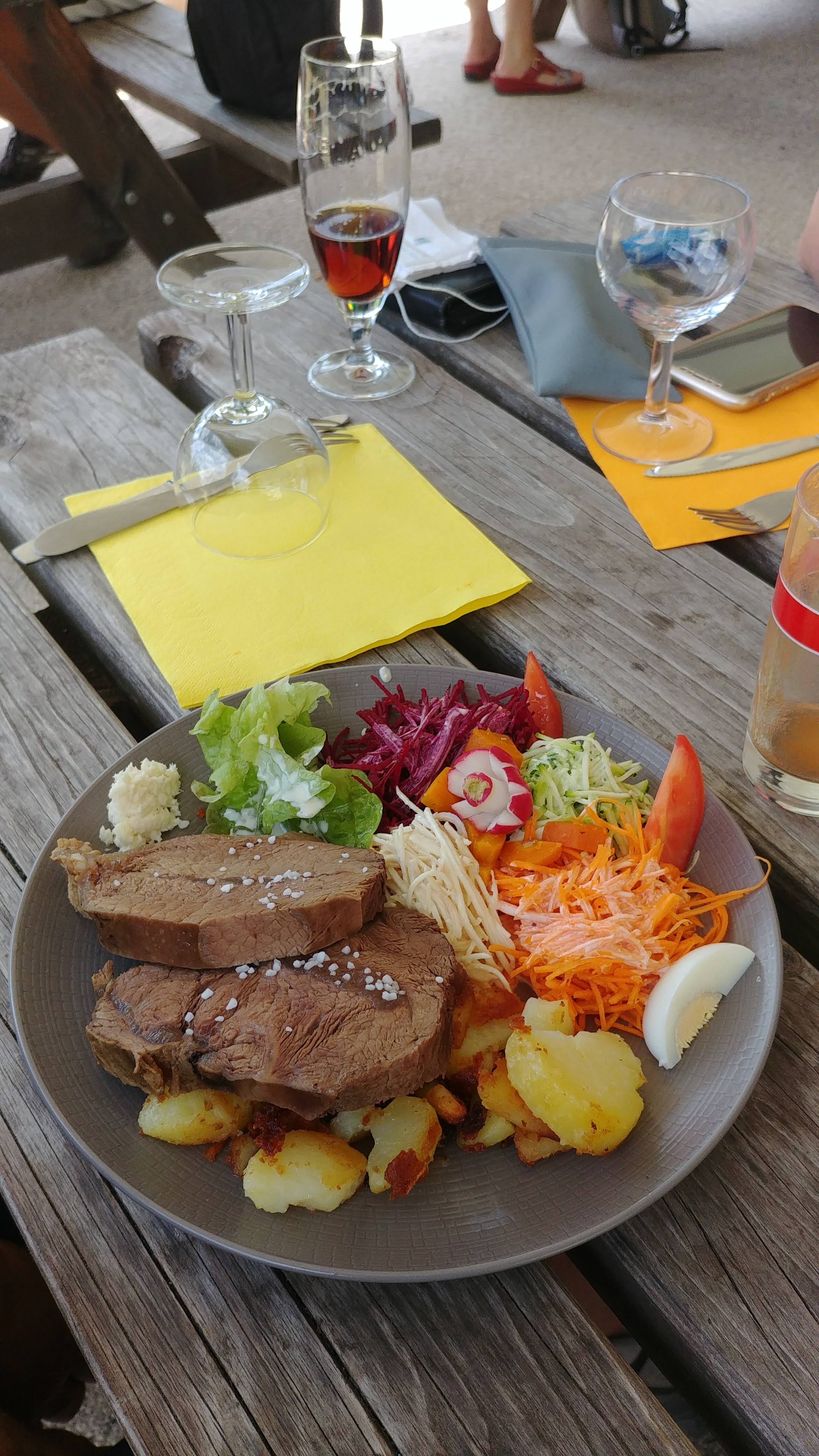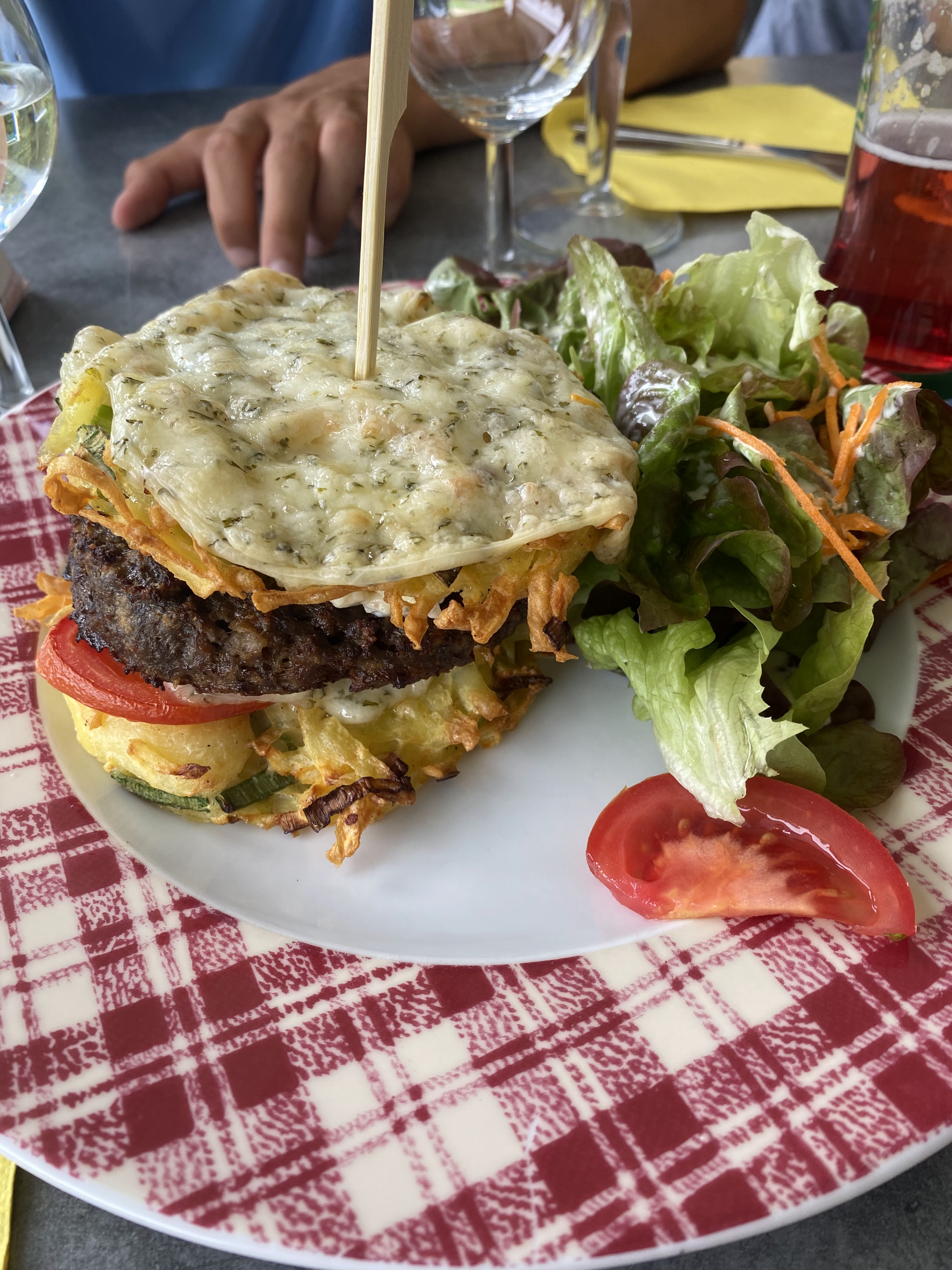 Le burger du jour était mal du tout, une bonne grosse viande généreuse avec du munster. On a adoré. On était de passage à vtt, on a pu manger au soleil, c'était très sympa.