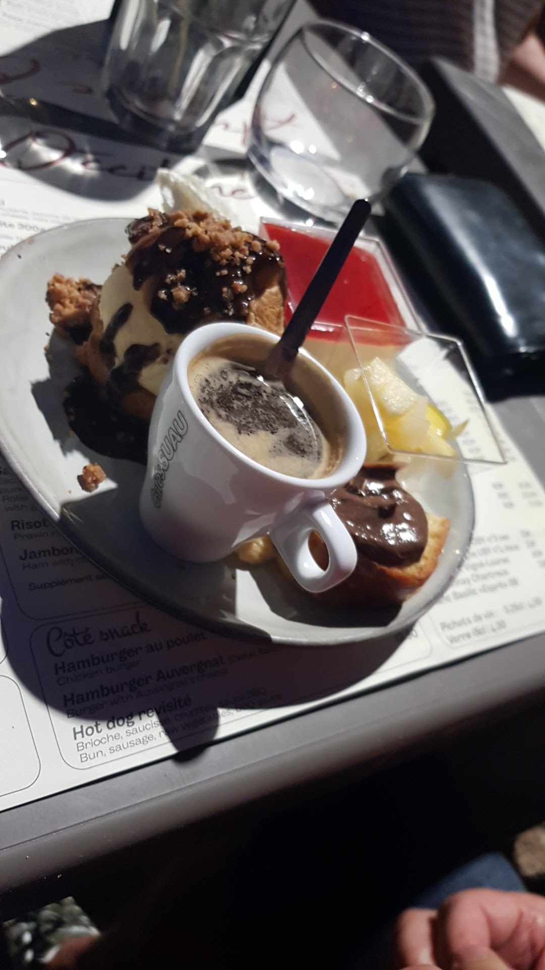 Intolérante au soleil, nous avons déjeuné dedans...éternel oubliés...le pain, l'eau...le vin....certains personnels cinglants...peut-être faut-il y aller l'hiver...