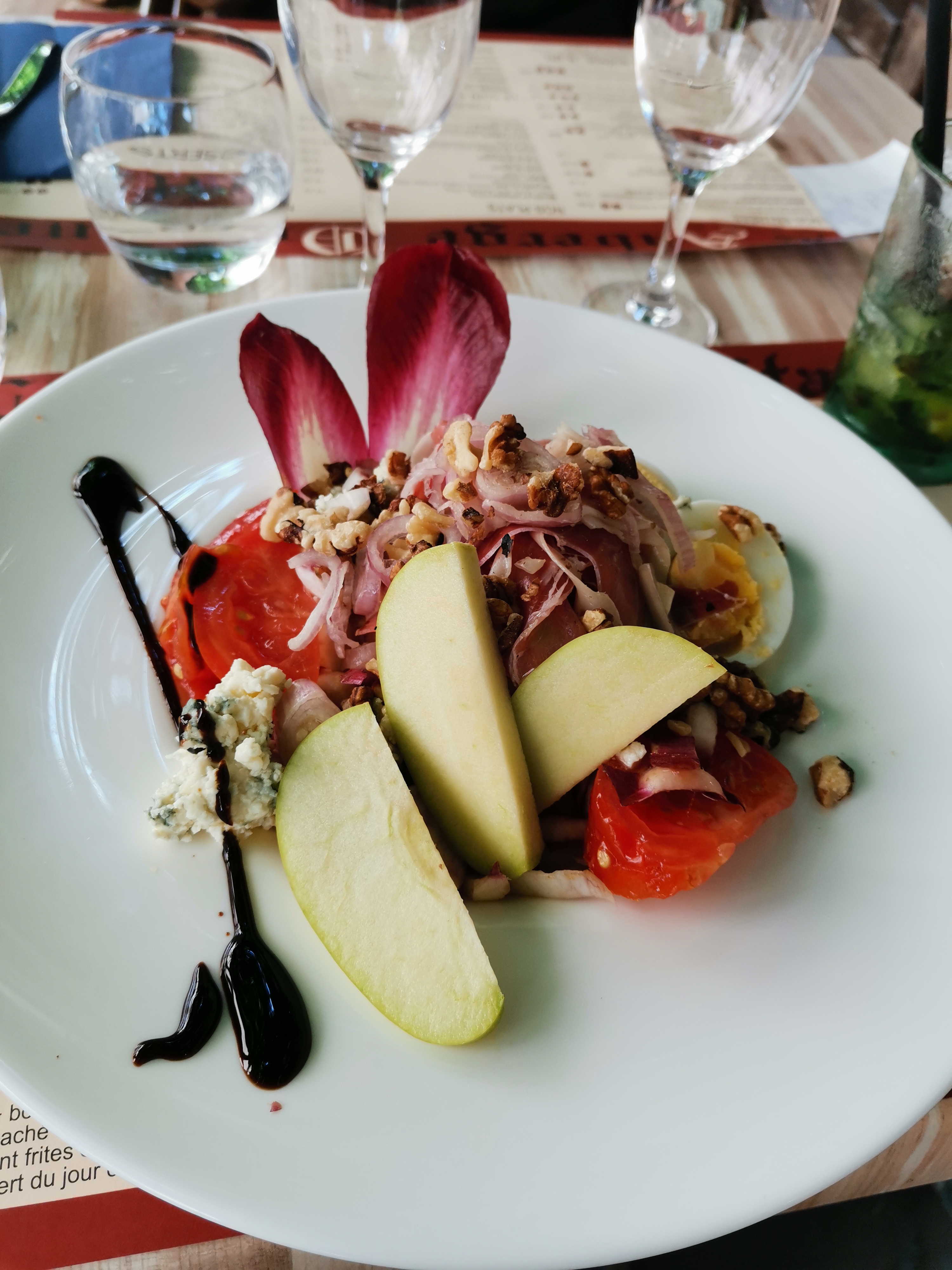 Un resto bien placé dans un beau village, nous y étions allés pour une soirée moules-frites et avions un bon souvenir. Nous y sommes revenus pour une occasion spéciale un soir de match de foot en juin 2021 : on a été servis bien trop vite, on n'avait pas fini l'apéritif, on nous amène l'entrée, idem pour la suite, et pour le dessert, quand je dis qu'on va attendre un peu (envie de vomir tellement ça allait vite), le serveur répond ok, mais si vous ne commandez pas de suite, je risque de vous oublier ! Salade approchant le 15 euros avec des gésiers encore avec la gélatine de la boite, pas sautés, et noix rances : je les ai laissées, personne n'a demandé s'il y avait un souci, on a pas râlé mais il n'y a pas d'attention portée au client ... Bref, des restos on en fait plein, on a des points de comparaison, notamment dans la région : mauvais rapport qualité-prix + cuisine moyenne + service au lance-pierres : on n'y reviendra pas, dommage.
