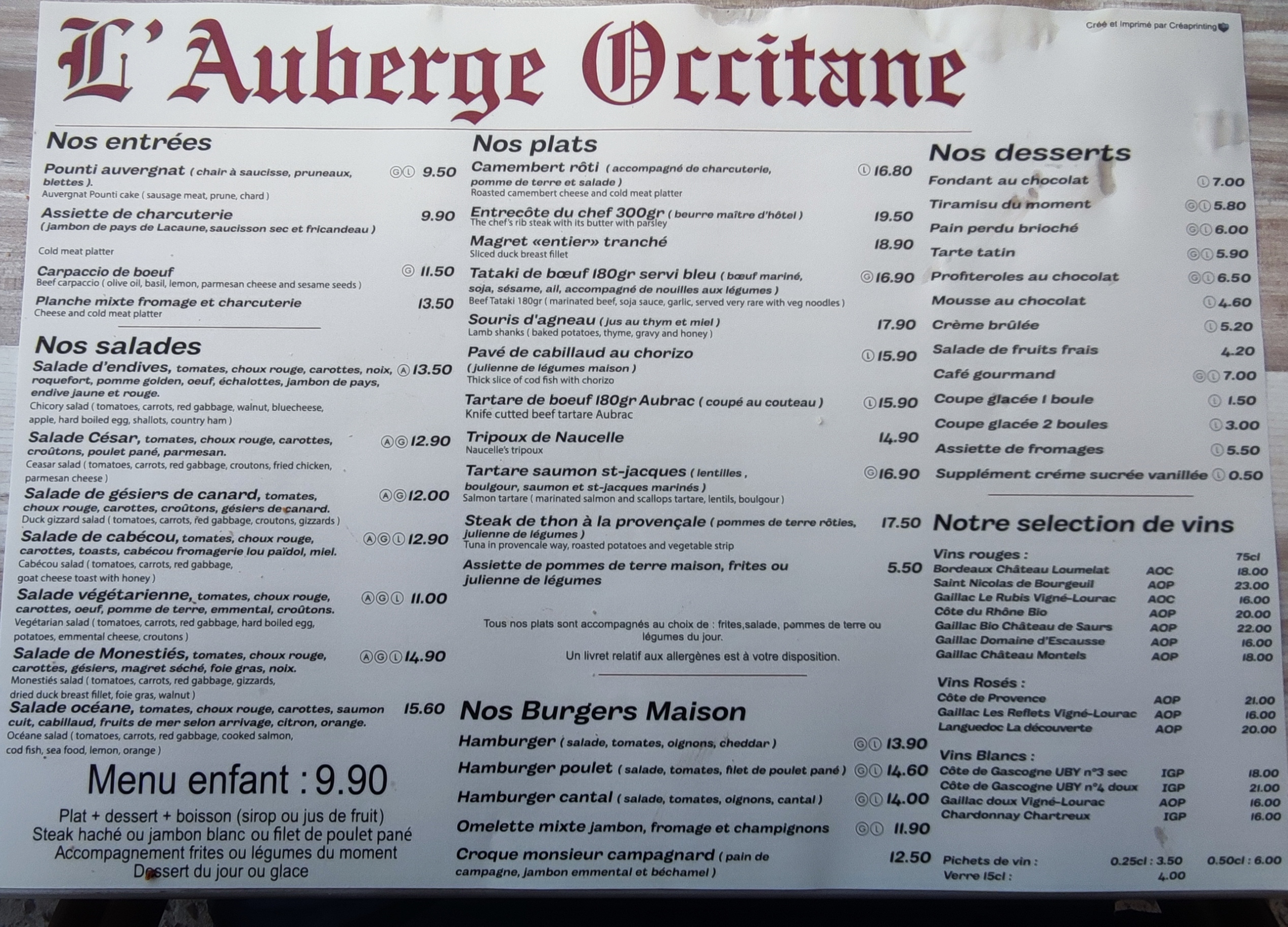 Dîner ce soir en famille. Un repas exceptionnel par ses saveurs, ses portions généreuses, le choix des plats et le service efficace et très agréable. Nous recommandons sans aucune hésitation. Très bon rapport qualité/prix au sein d un village pittoresque.