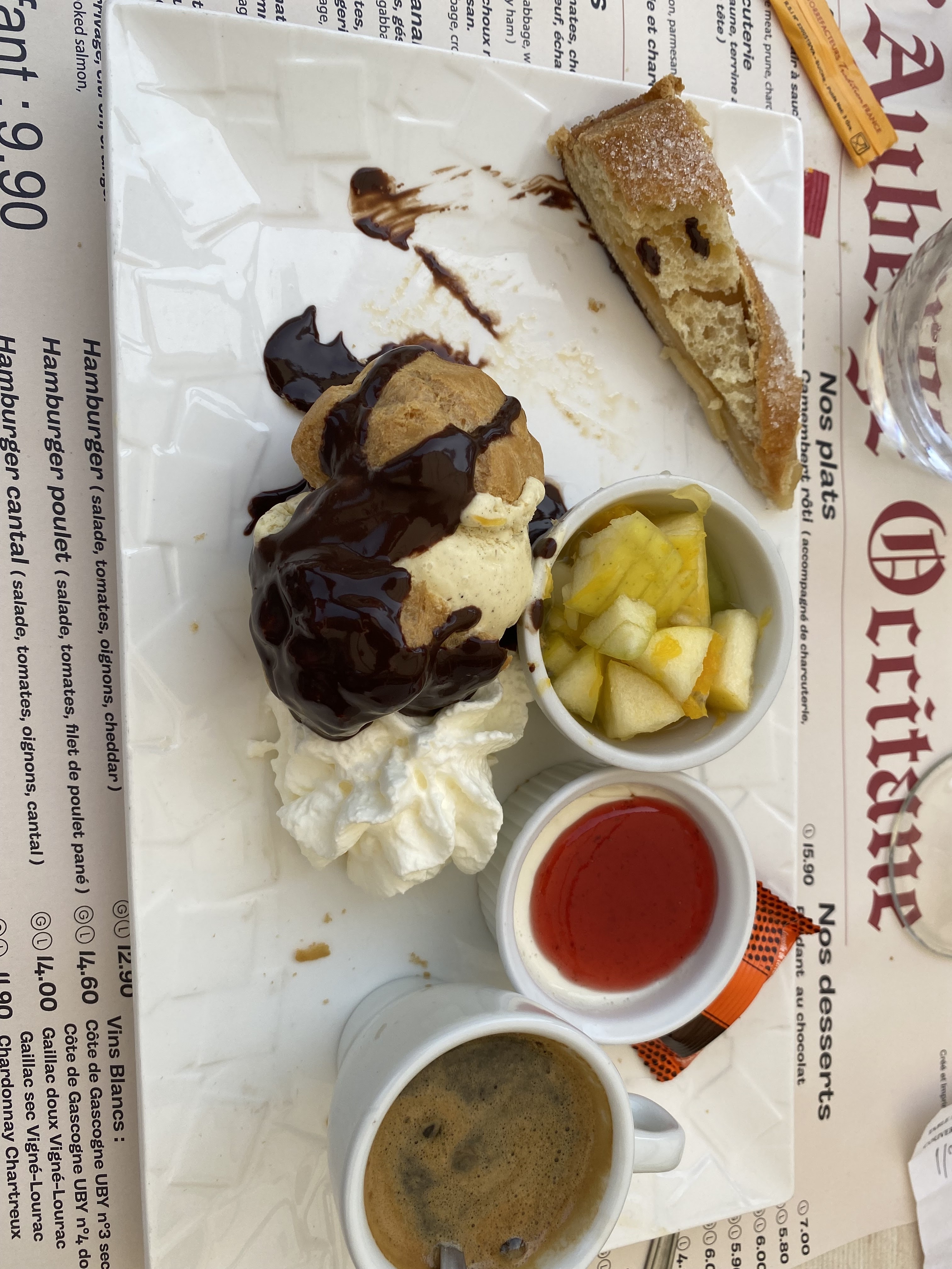 Sous une belle terrasse dans ce merveilleux village que nous avons dégusté un repas délicieux La souris d agneau délicieuse le beau était savoureux avec très bonne puree et les desserts que du bonheur un très bon café gourmand une crème brûlée excellente Merci pour VOTREGENTILLESSE et vos plats généreux et savoureux