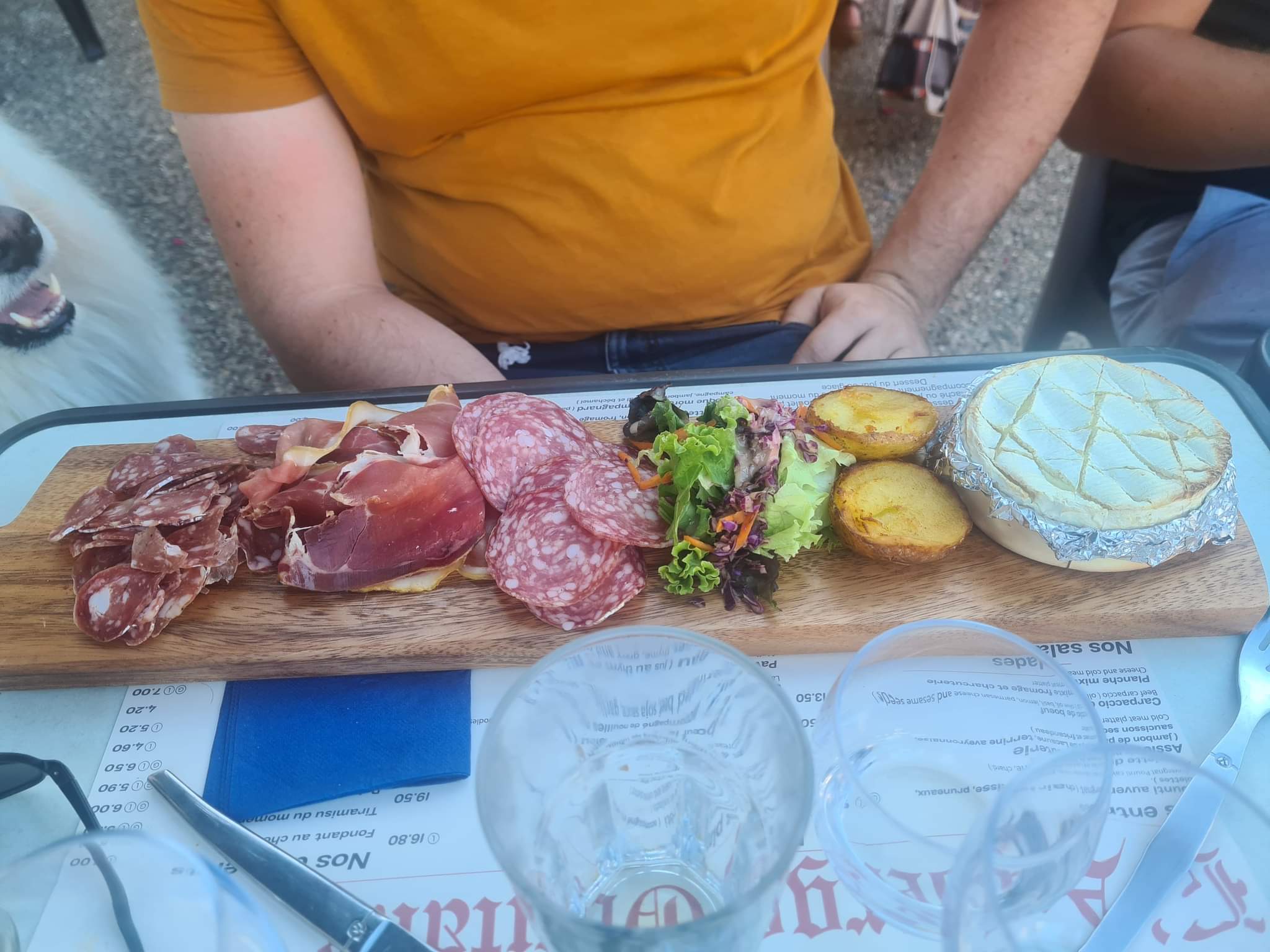 De très bonne assiette pour 5 personnes une terrasse à l'ombre et service très bien un peut long mais vue le monde qui avait c étais très compréhensible et normal puis nous avions le temp nous n étions pas pressé