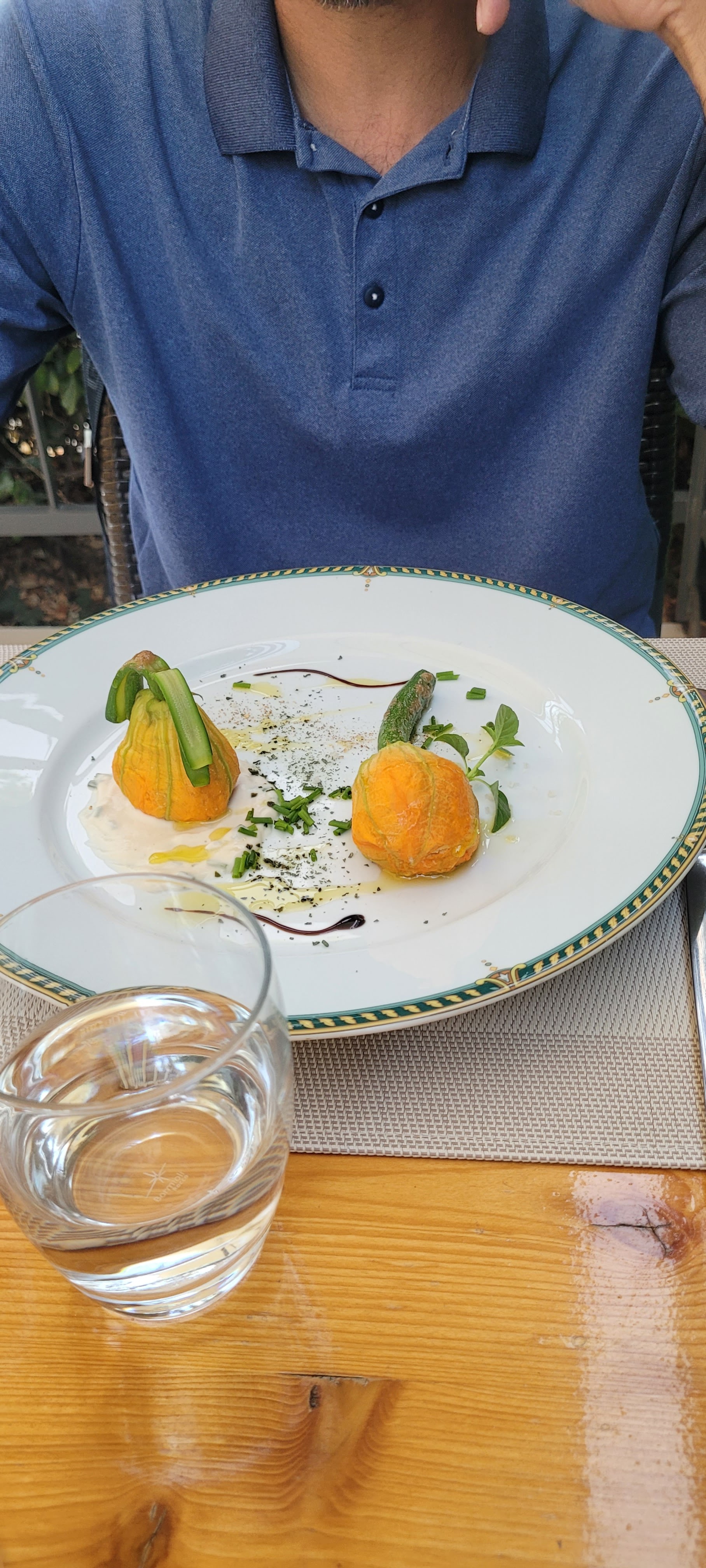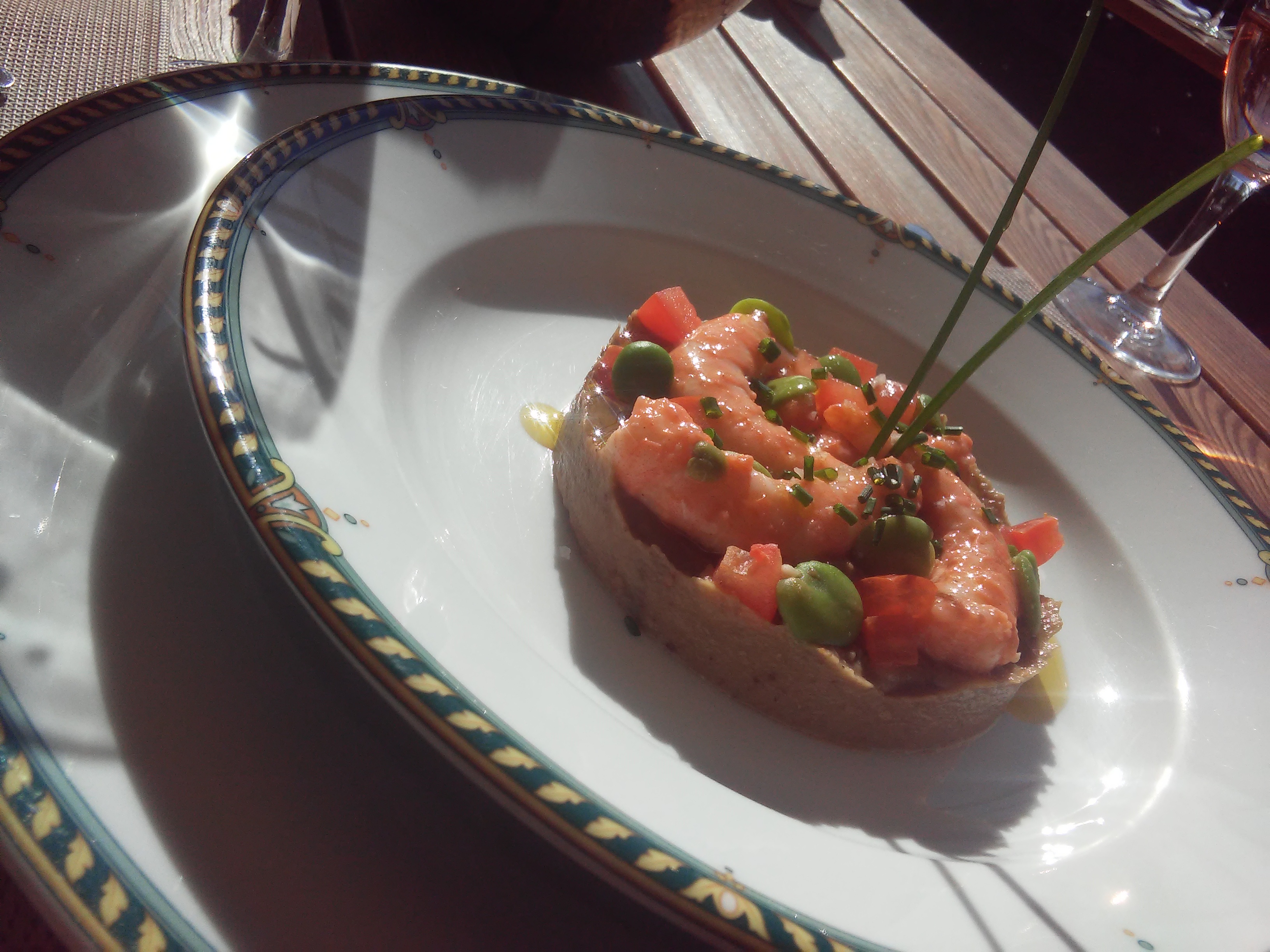 Plats succulents pour nous 3 : fleurs de courgettes farcis aux 2 saumons, aioloup, homard aux tagliatelles, glace à la lavande et ses tuiles, baba aux rhum, calisson. Tout était parfait, félicitations au chef.