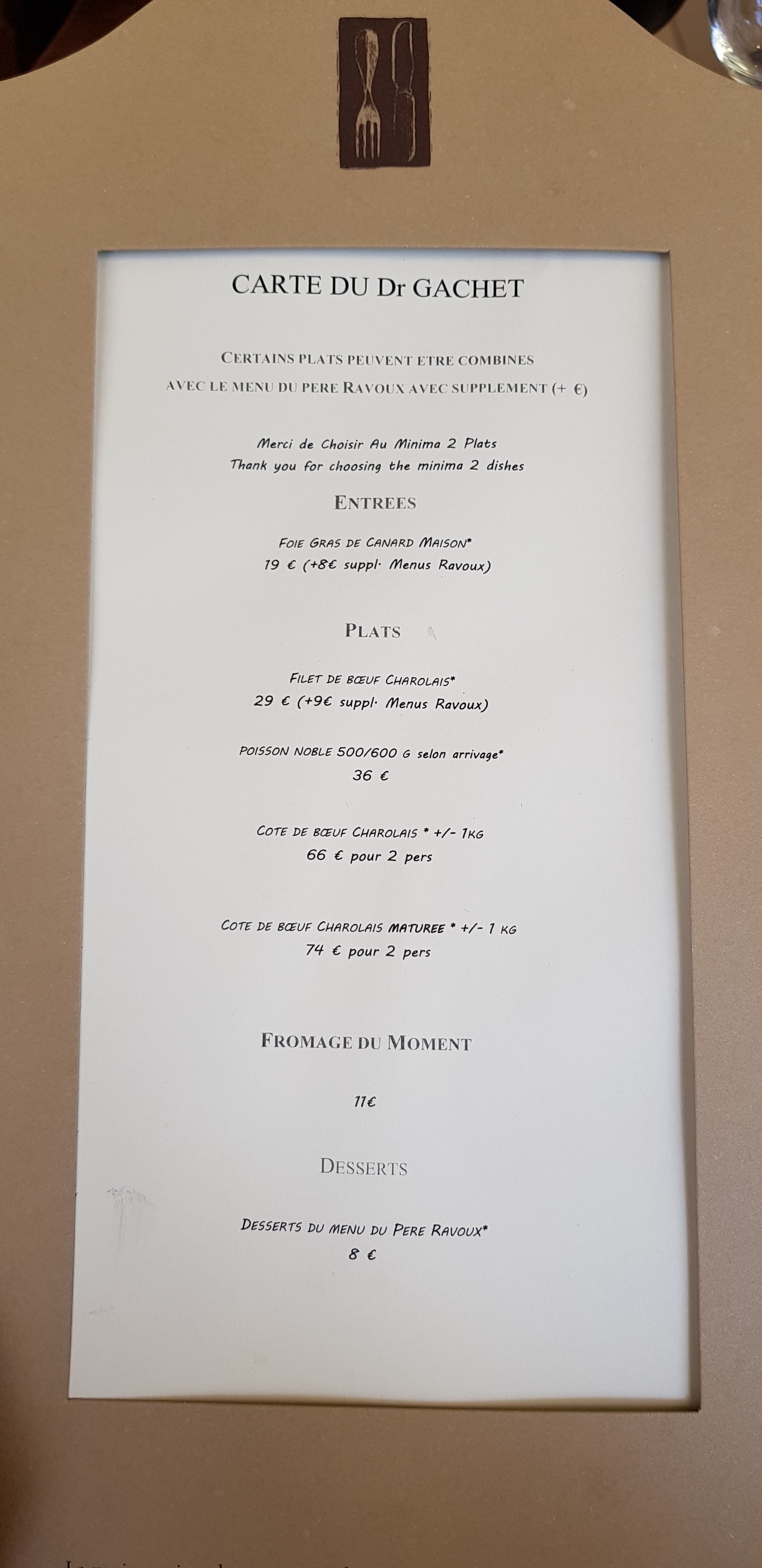 Nous sommes allés aujourd'hui à l'auberge Ravoux. Une totale déception par rapport à nos visites précédentes. En dehors du service tout était de qualité très médiocre. Plus rien à voir avec ce que l'on avait pu apprécier jusque-là. Van Gogh et Malraux auraient sans doute le même avis.