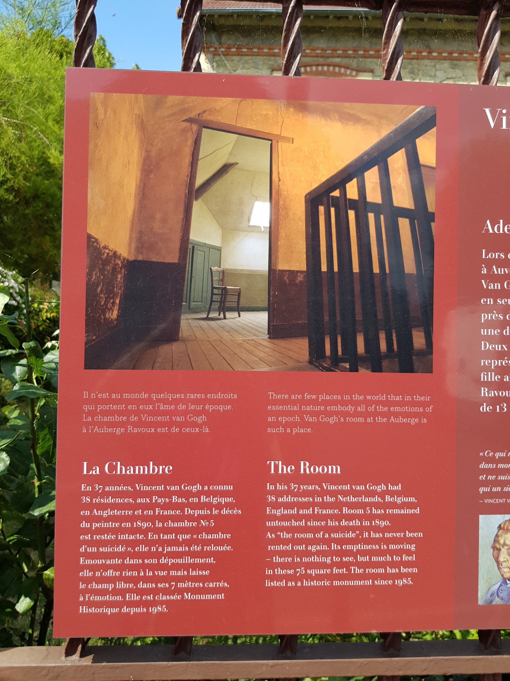 chambre ou vang gogh a vecu les 3dernieres mois de sa vie. visite interessant et le petit filme a la fin aussi