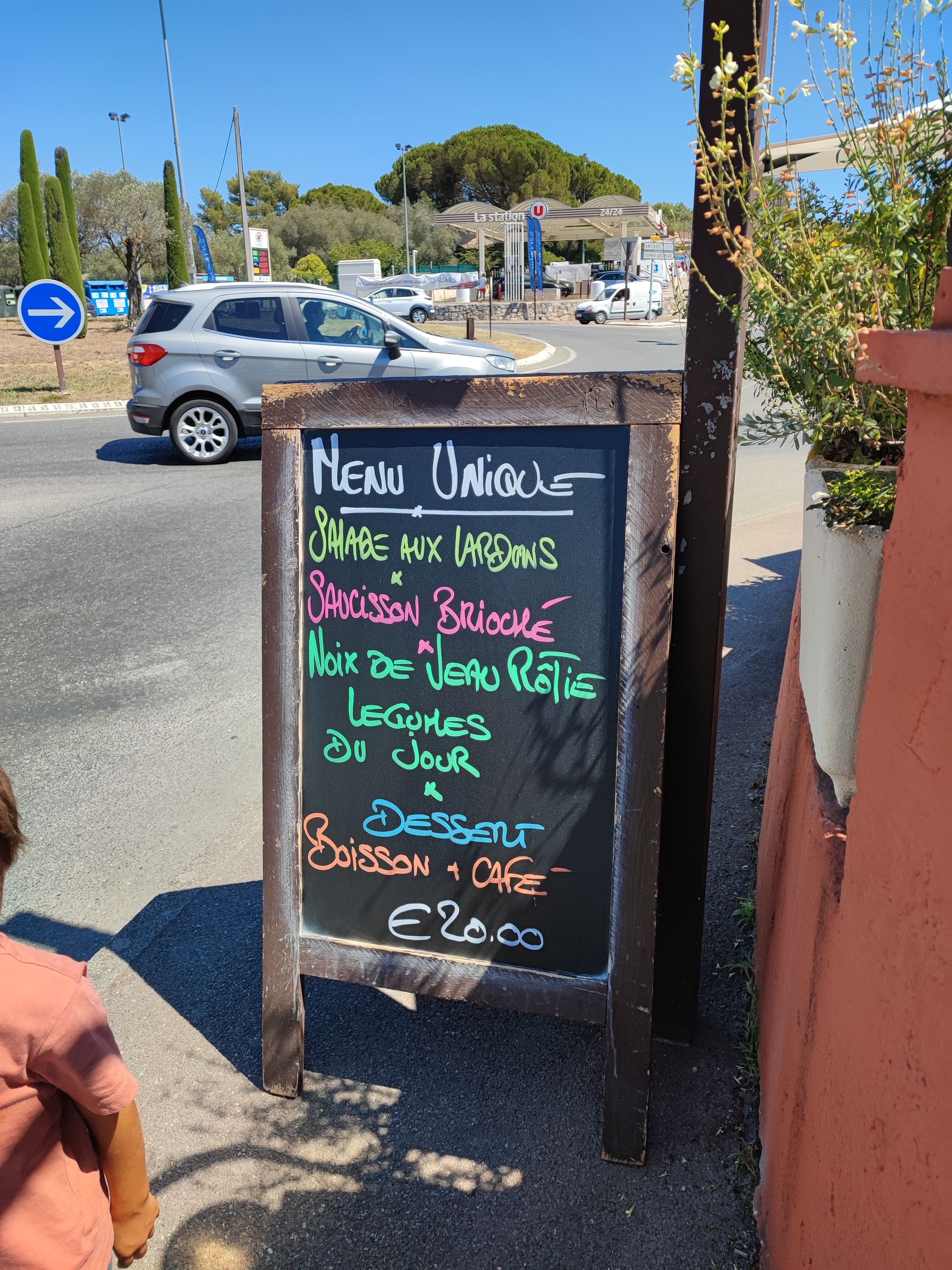 Wow quelle découverte ! Nous avons eu un repas fantastique. Le menu est unique à 20 euros avec une entrée (caviar d'aubergine), un premier plat (brandade), un deuxième plat (pintade) et un dessert à choisir parmi 5 alternatives (mousse au chocolat). De boisson, nous avons commandé un vin rosé qui est en libre service (faite par un chateau du Var, tres correcte) ! Dommage que j'aie dû continuer à travailler après... :) Le cafe est inclus aussi. La serveuse était excellente, très sympathique et très professionnelle. Un endroit hautement recommandé ! Nous y reviendrons encore et encore !