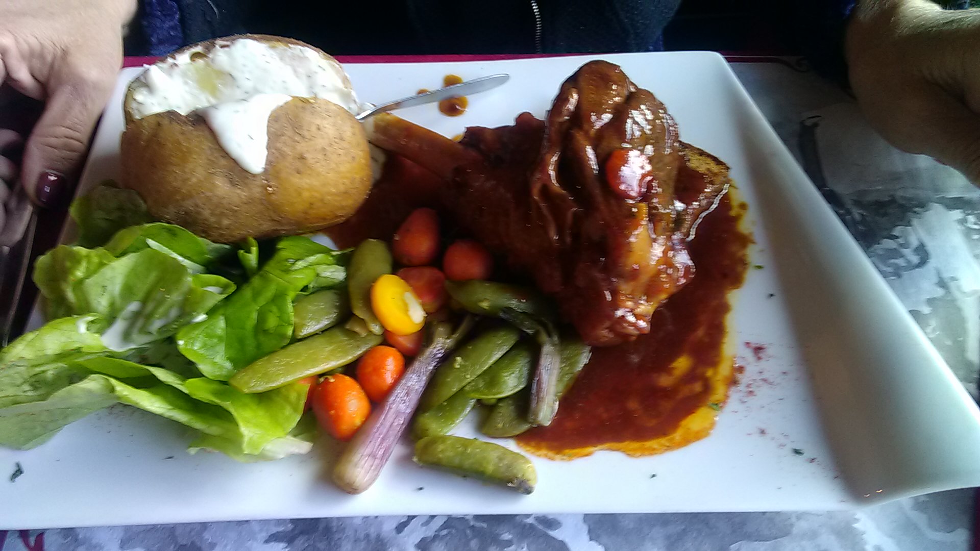 Bon cadre,bonne cuisine.... 2 étoiles de moins pour la présence de chien dans le restaurant (sur une chaise à manger dans une assiette),et les couverts qui été sale.
