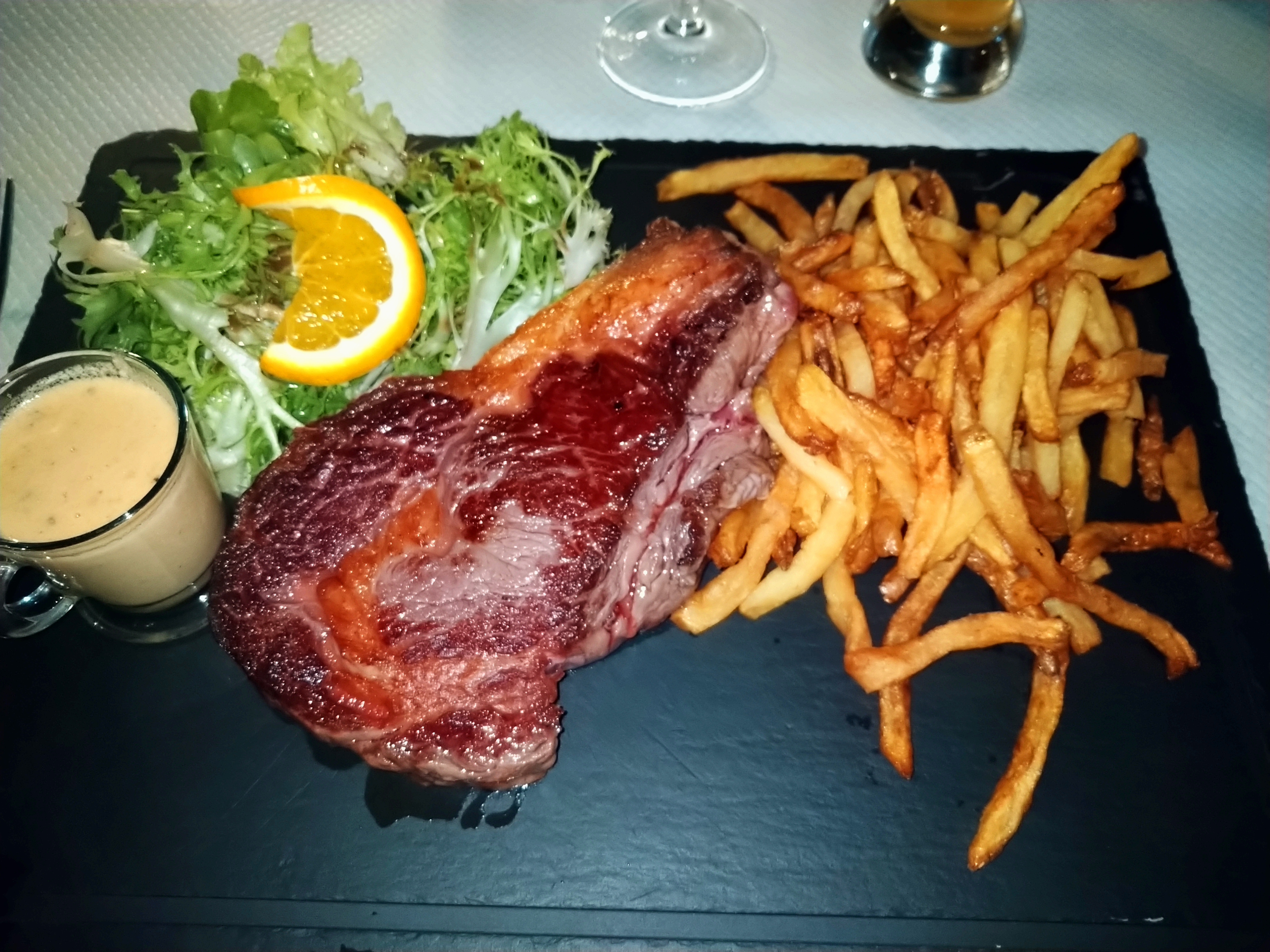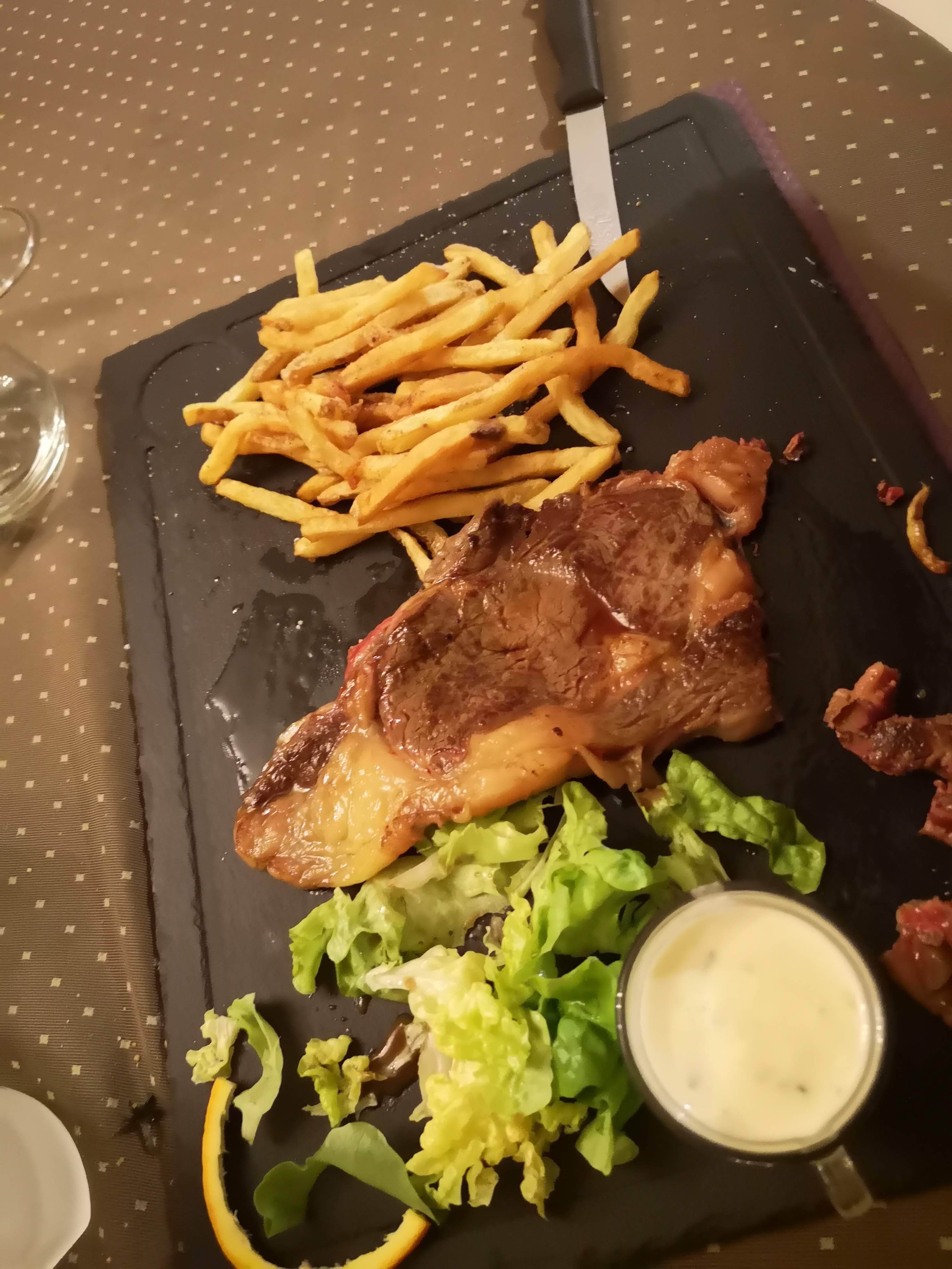 Repas du dimanche, Viande super tendre, très bonne frites. Le serveur un peu froid au début mais ensuite très Pince sans 😂