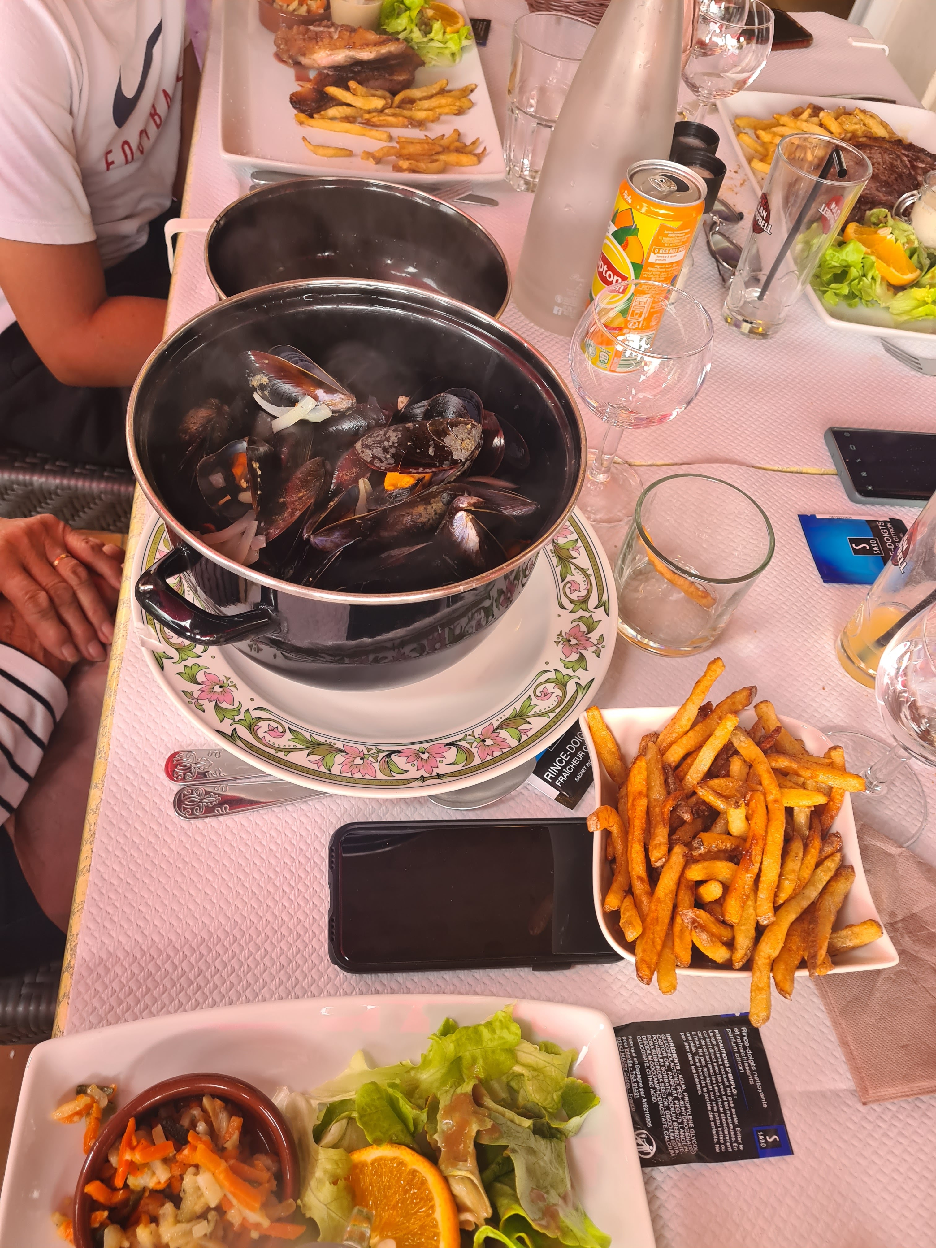 Tres bon vin au pichet , moule au top ainsi que menu . Merci , désolée pour avoir demande table au soleil mais j aime pas être à l ombre. Bonne continuation.