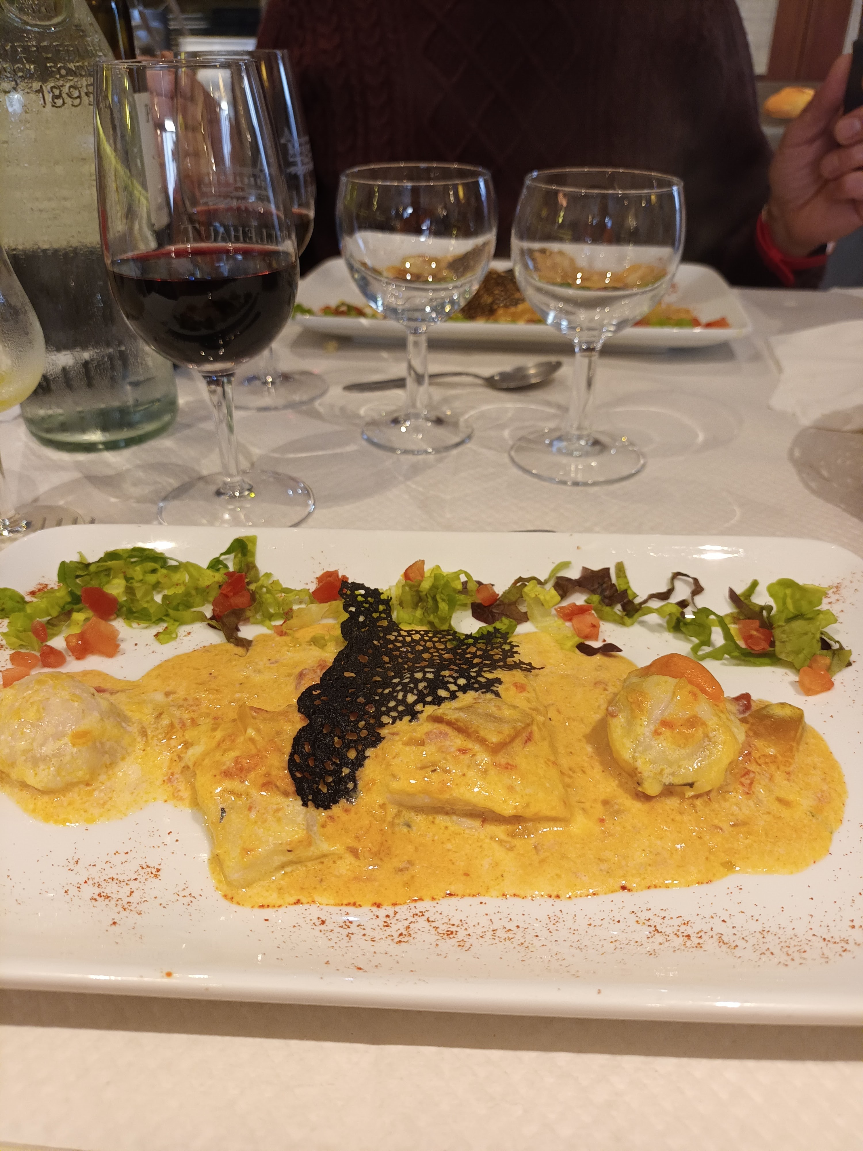 Ravi de voir une femme chef créer une merveilleuse cuisine dans la cuisine. Soupe savoureuse, suivie d'un cassoulet St Jacques (coquilles Saint-Jacques fondues dans la bouche) avec du poisson (parfaitement cuit/assaisonné), et d'une salade verte. Juste assez de place pour le dessert ; nous avons eu une tarte aux poires et au chocolat ou un riz au lait crémeux - les deux étaient délicieux. Dîné : samedi 1er octobre 2022