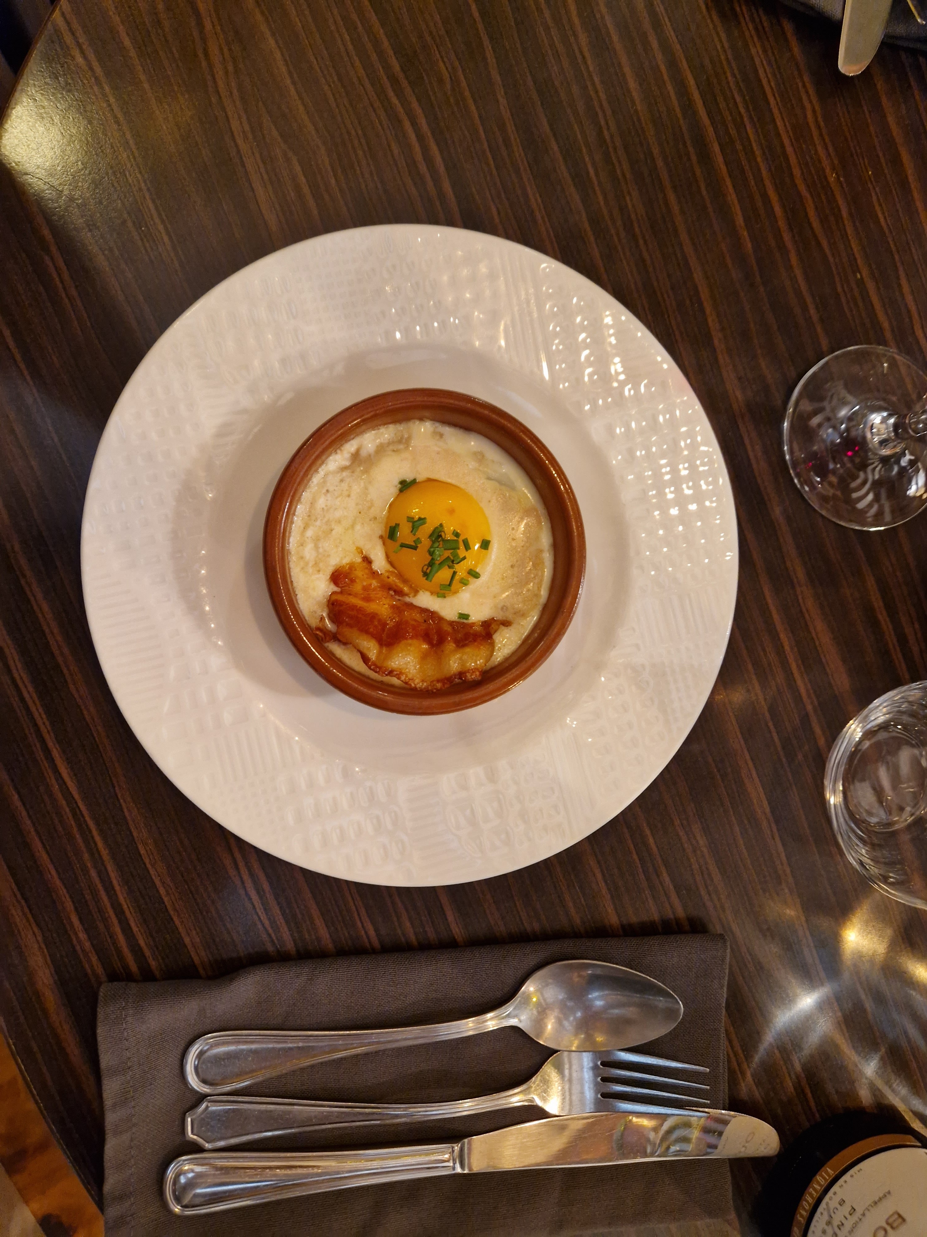 Salle authentique et dans l’ambiance Rouennaise, service agréable. Par contre la nourriture n’est vraiment pas terrible, un œuf parfait trop cuit, des champignons flasques et froids. Sûr le plat, viande sèche, jus mal fait et accompagnement pas agréable.