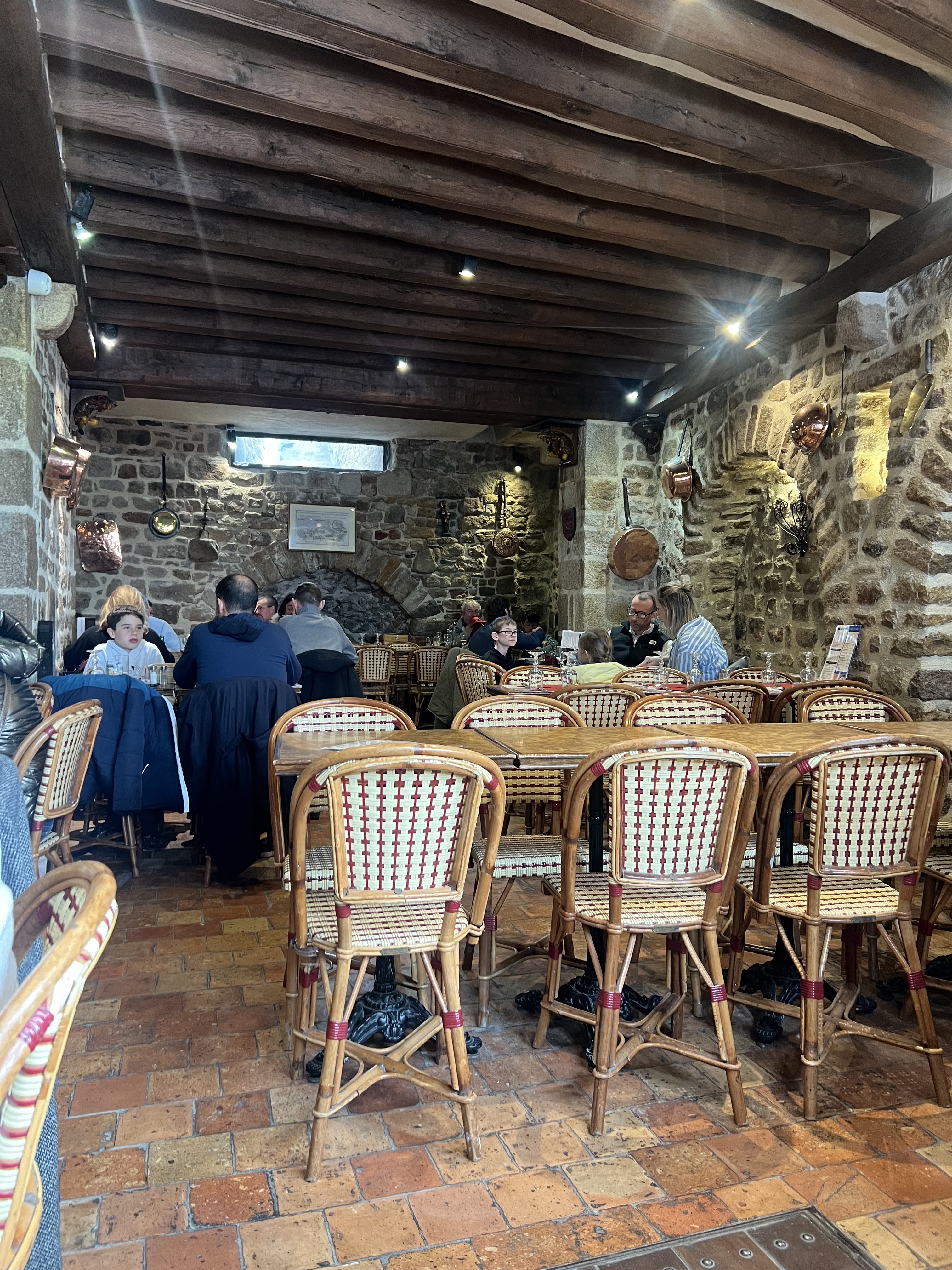 Seul restaurant qui nous a accepté avec plaisir 2 adultes 2 enfants et 🦮 les autres étaient soit complet enfin pour nous ou soit ok mais en terrasse euh non merci … bref encore merci et en plus de l’eau pour elle ! Le service : agréable et les plats impec ! Oui nous sommes au Mont st Michel donc les prix sont en conséquence mais raisonnable. Nous nous sommes régalés et sévis plat-dessert en 45 min vraiment bien ! Je vous recommande !