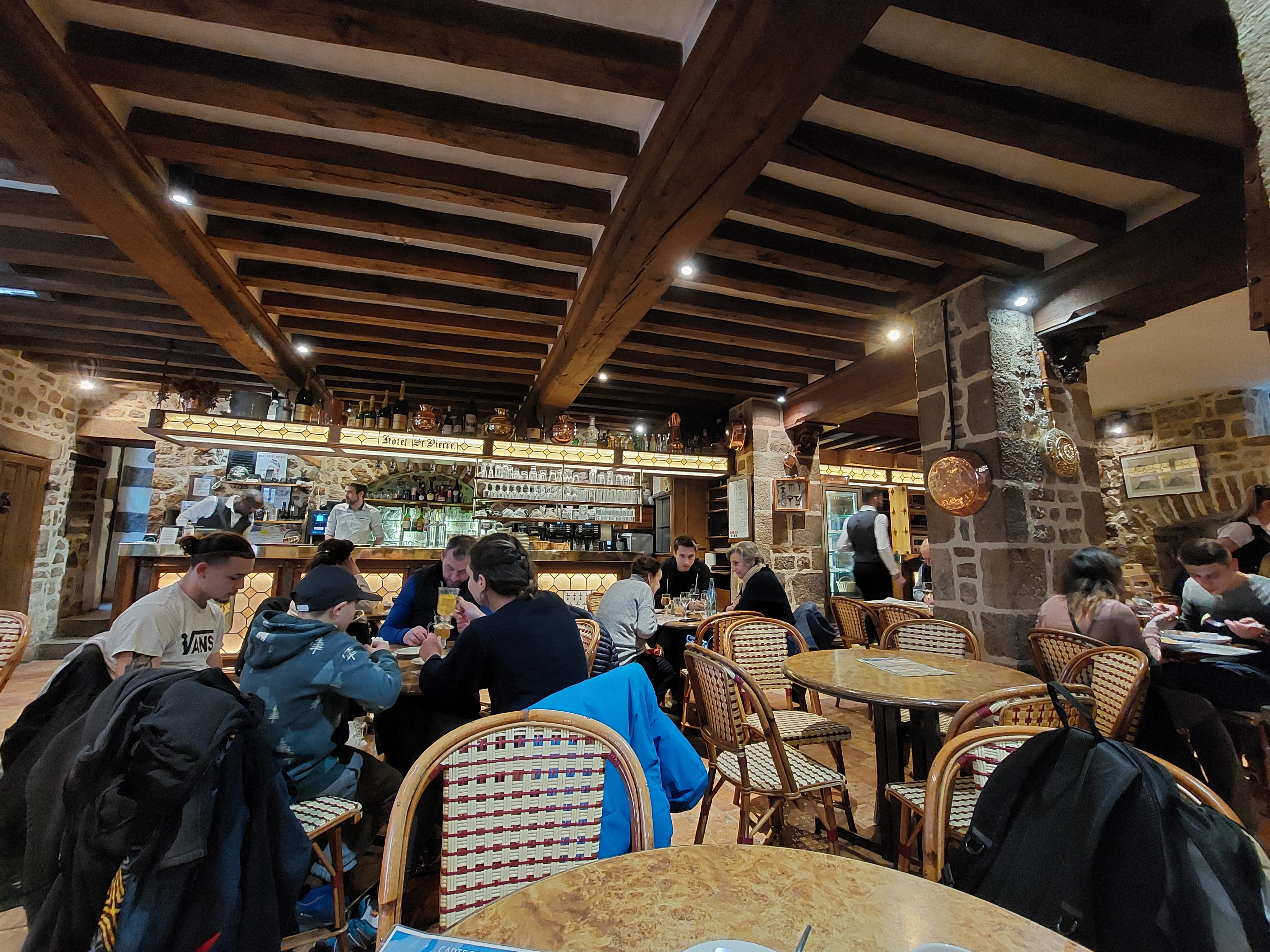 Le restaurant de l'Auberge Saint Pierre vous accueille dans un décor de pierres et de boiseries avec des petits moineaux qui se nourrisent dans les quelques coupoles en cuivre suspendues. Il y a des chaises hautes pour les bébés ainsi que des toilettes enfants et une table à langer. Internet. Les prix sont dans la fourchette bassz du Mont avec la même qualité.