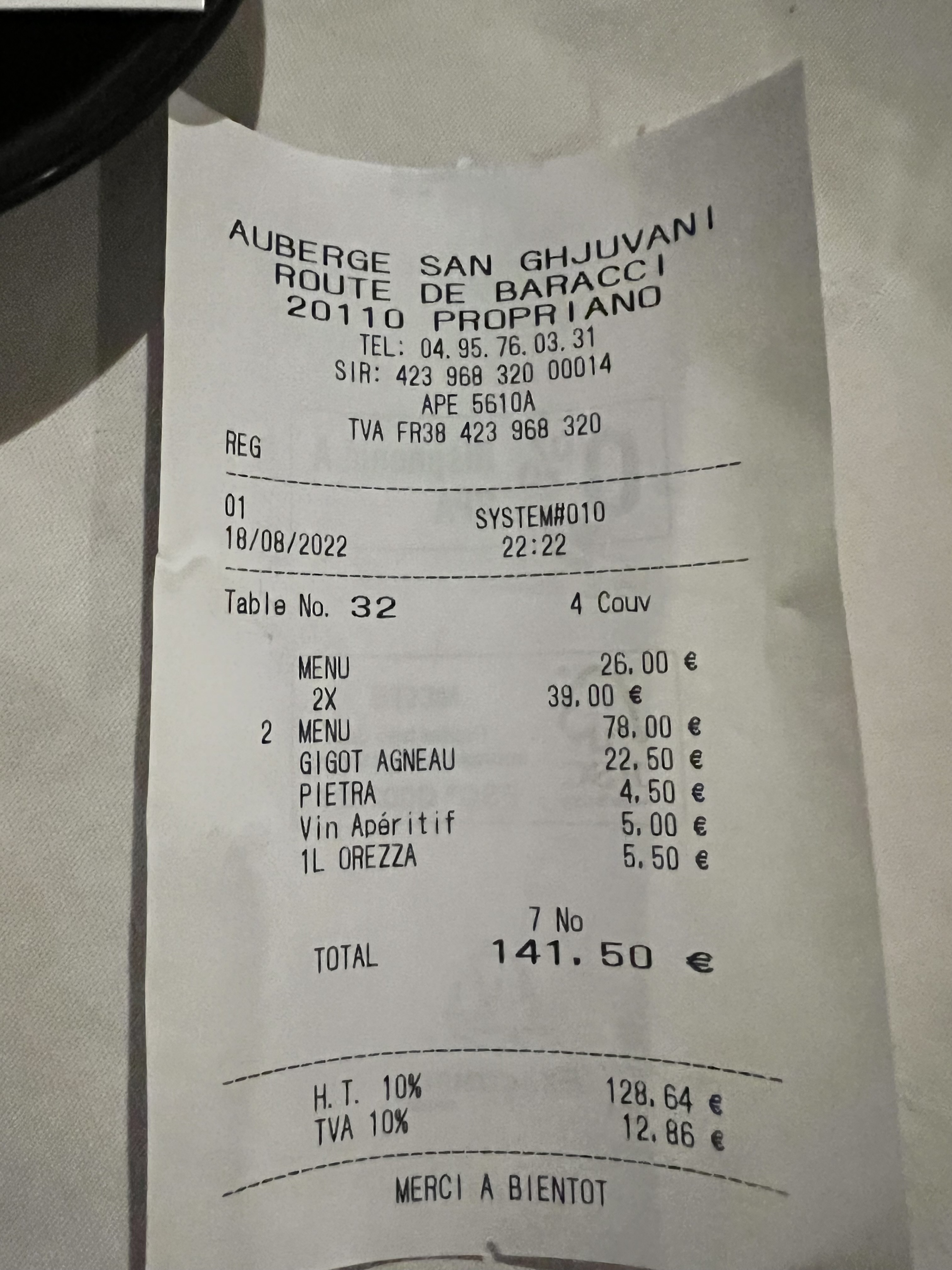De retour à l'auberge après 6 ans sans venir en corse, un accueil toujours aussi agréable. Ici on ne pousse pas à la consommation, les plats très copieux se partagent avec aisance. Prix correct au vus des portions et de l'accueil.