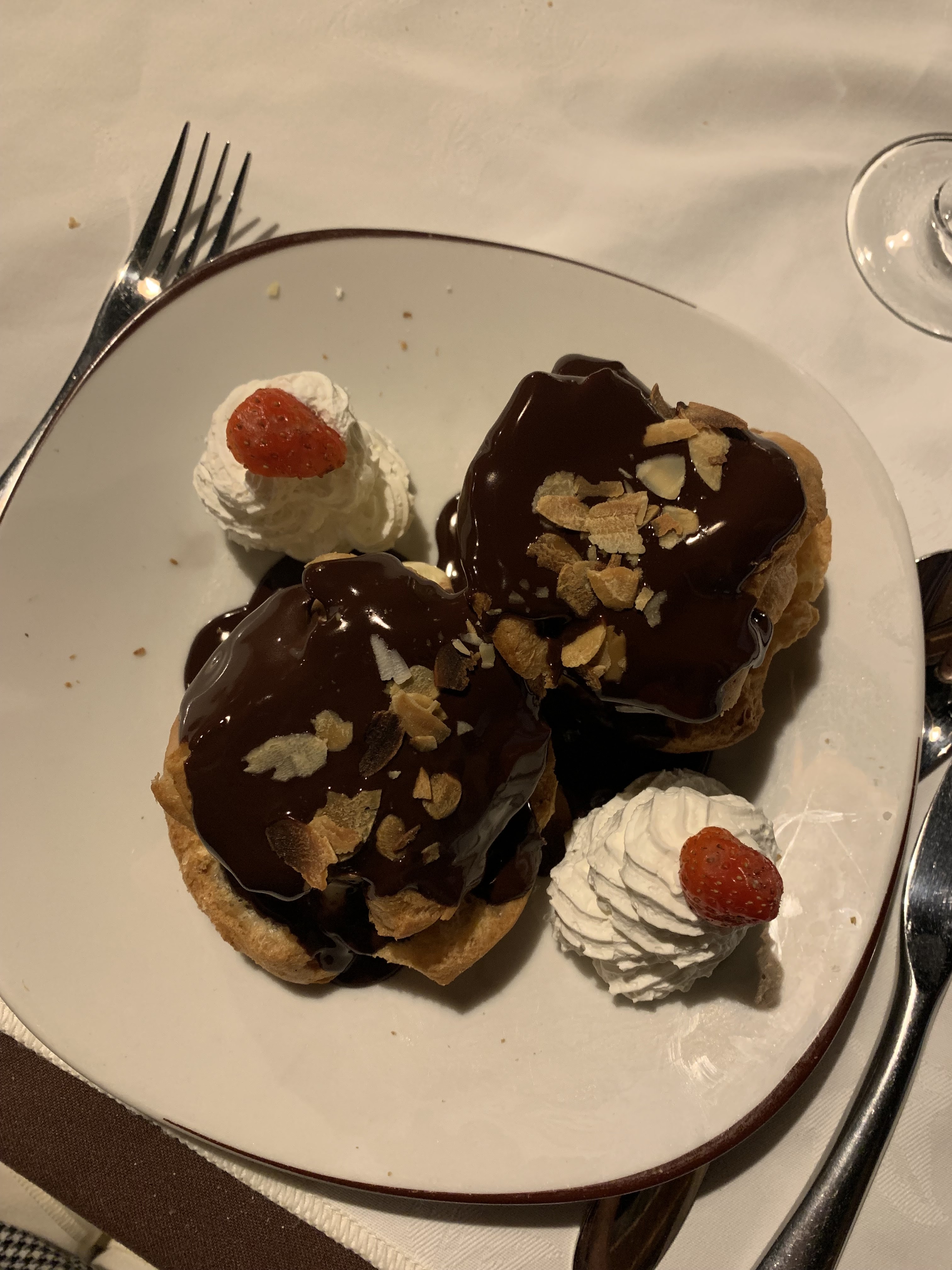 Très belle soirée avec les chanteurs Corse, repas très bon ( ventru et cannelloni au brocio), une remarque sur les verres à vin lorsque l on commande une bouteille pas adapté pour apprécier les vins.