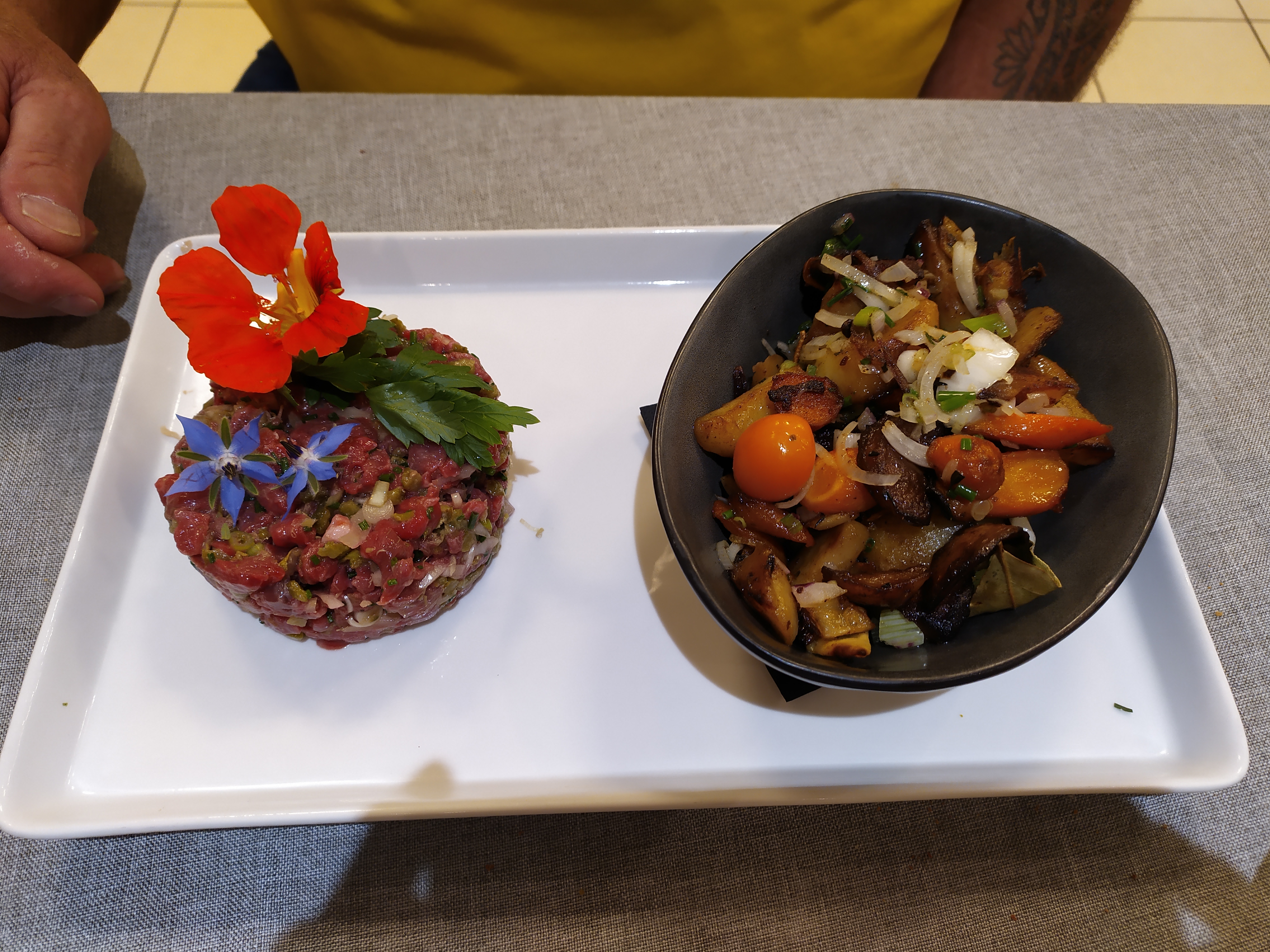 Plats originaux et simples à la fois y en a pour tous les goûts...mais super bons.du gout des saveurs du vrai des mets frais et fait maison comme on en voit plus .. C etait un 1ere je reviendrai avec plaisir serveuse au top