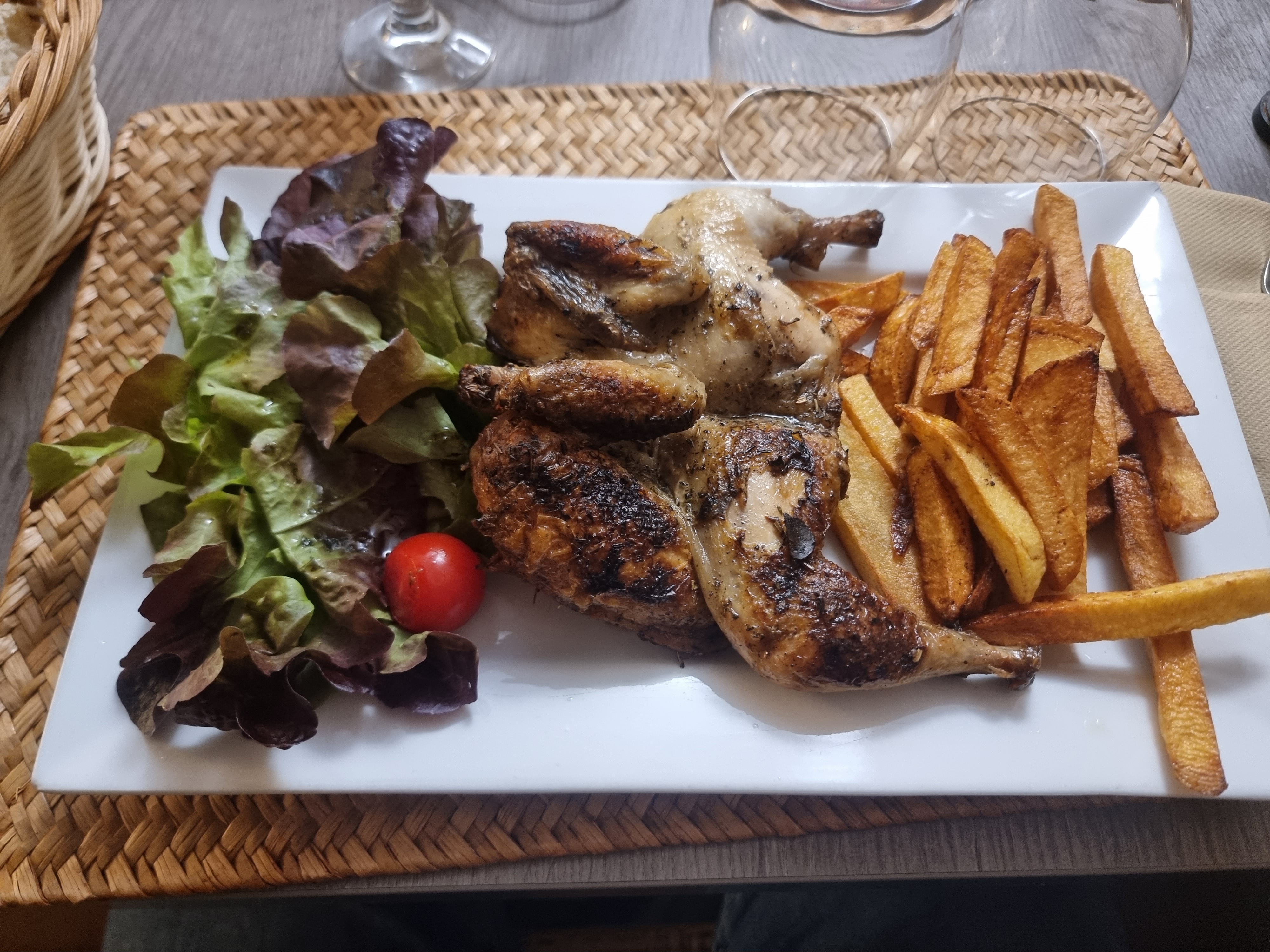Repas en terrasse super agréable (malgré la proximité de la route,) accueil chaleureux, serveur sympathique et très serviable. Produits locaux et plats copieux, même les sangliers s'y invitent ! Adresse à retenir !