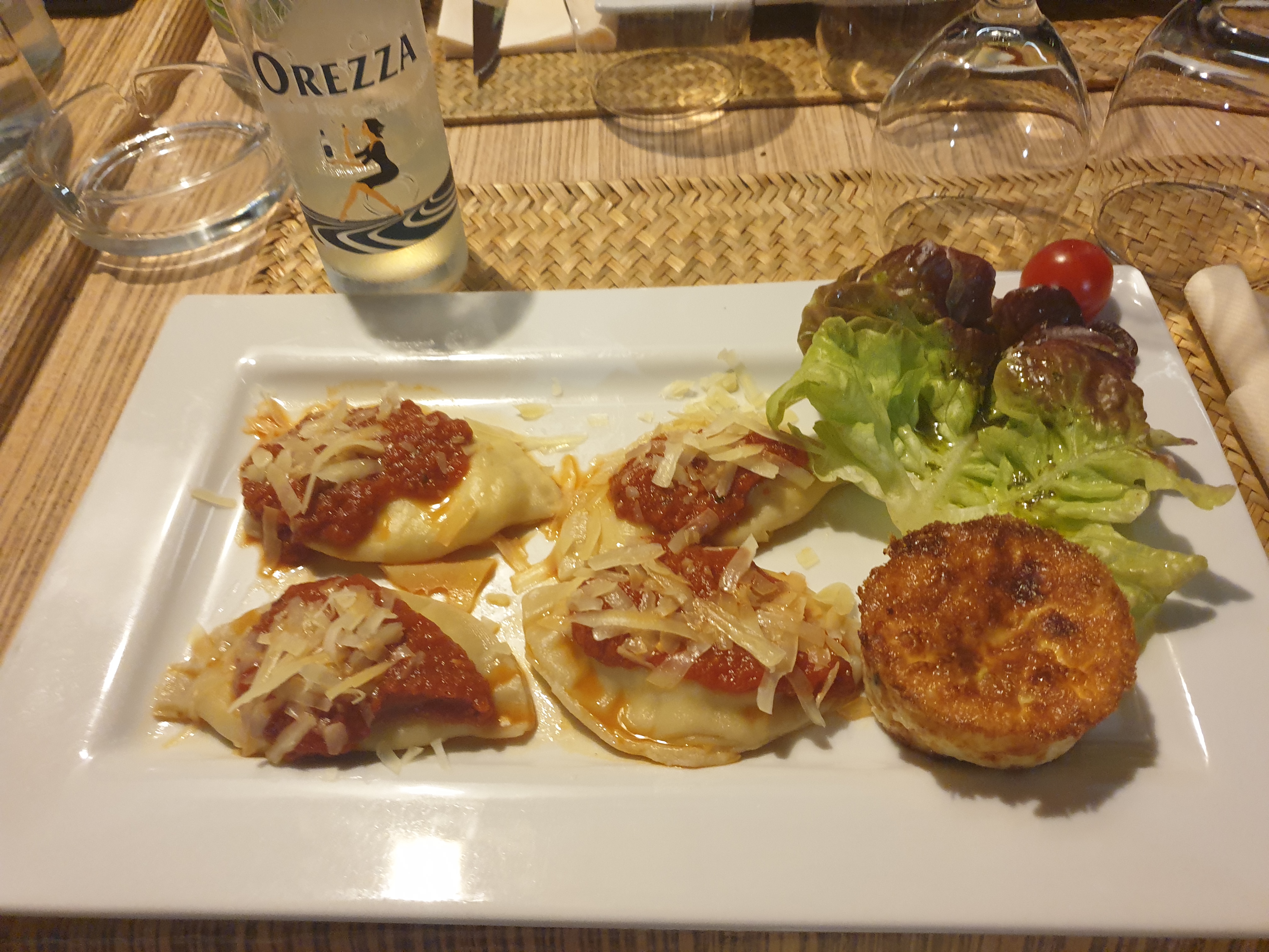L'accueil était très bien et le service aussi. La salade de chèvre que nous avons pris en entrée était délicieuse mais attention pas végétarienne, il y avais du lard fumé dedans. Par contre, le plat de ravioli Corse nous a laissé septiques! La pâte n'était pas bien cuite, vraiment crue a certain endroit et le plat était fade, la note un peu salée pour le coup... Dommage.