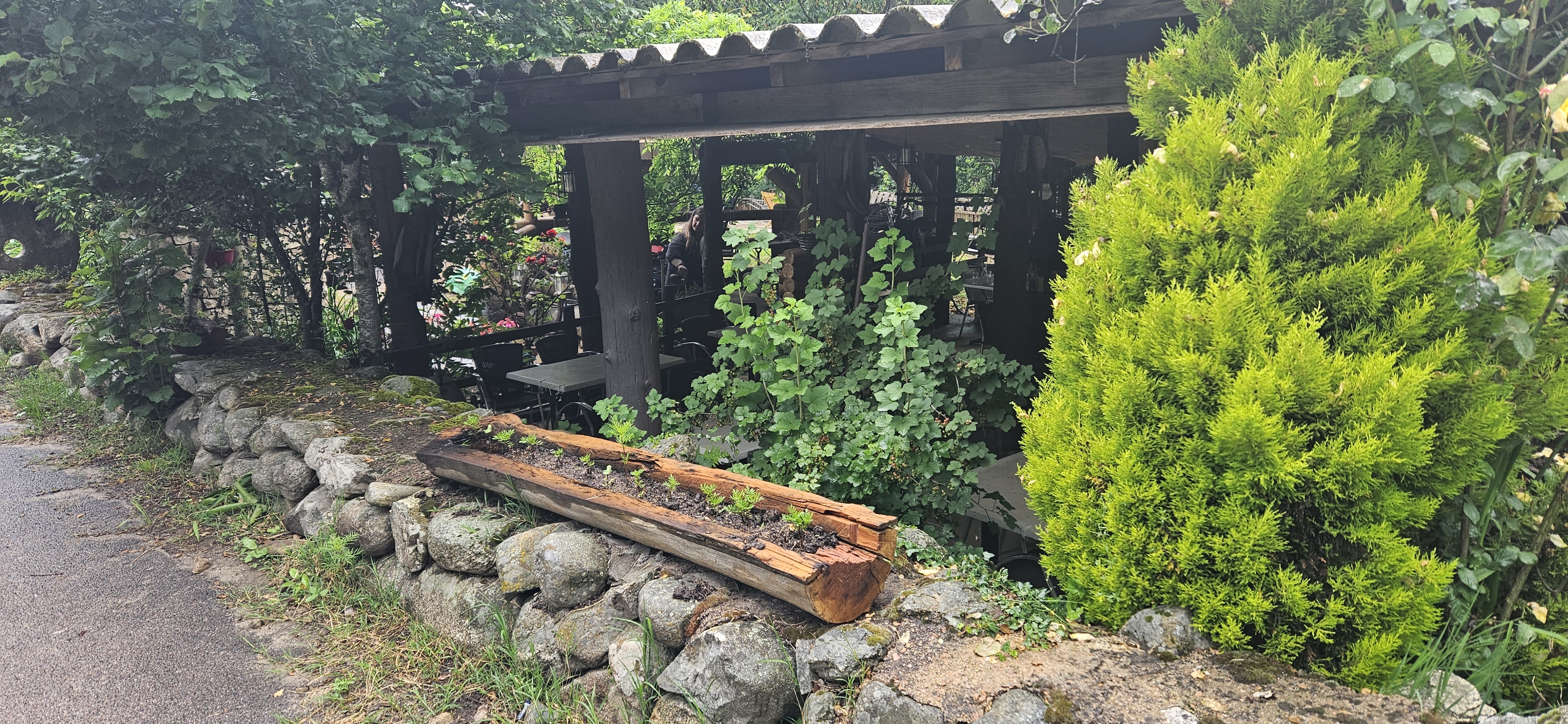 Endroit tranquille, bien ombragé. Que des produits locaux ; viande élevée à côté, légumes du potager, cuisine maison :) patron détendu et bien sympa