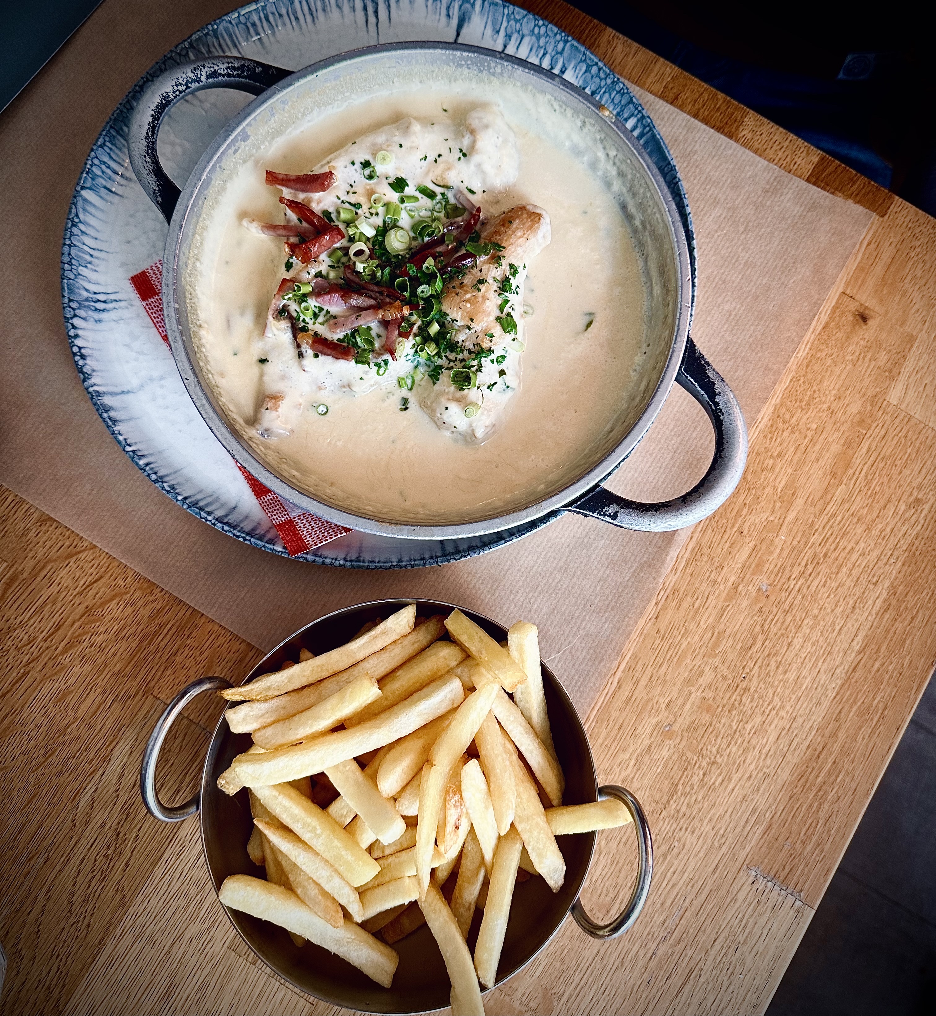 Le lieu est chouette avec un bel accueil… mais les plats sont franchement mauvais. Les pâtes chorizo -persillades étaient un ensemble gélatineux au goût uniformément mauvais. La viande du burger un amas de gélatine, avec des frites surgelées trop salées. Le repas nous reste sur l’estomac, horrible !