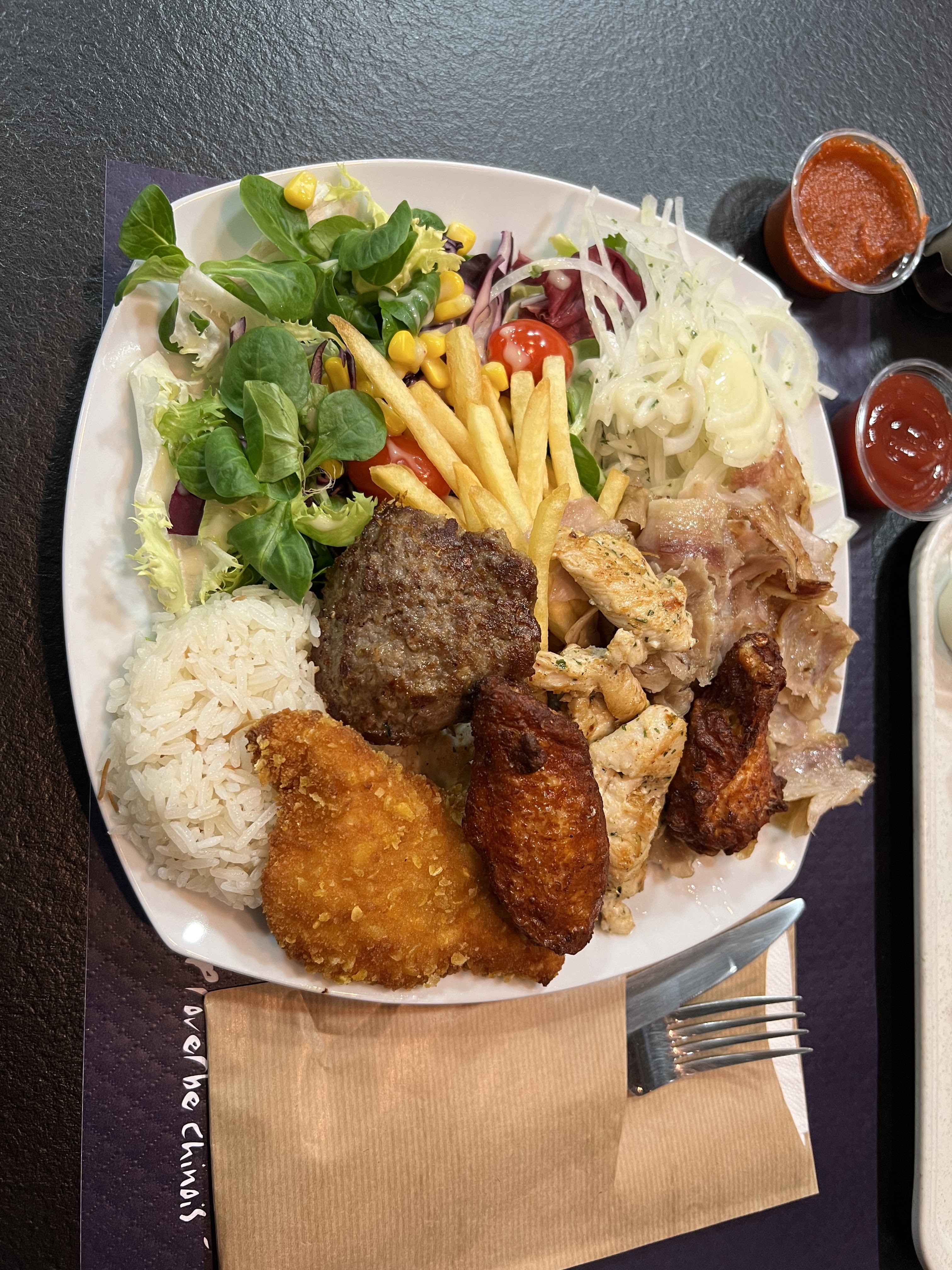 Parfait. J'ai commandé une assiette kebab, les quantités sont très bien, beaucoup de diversité d'aliments, tout était très bon. En plus le restaurant est propre, le personnel agréable et ils ont une terrasse abritée. Un repas au soleil en début d'année...le top !