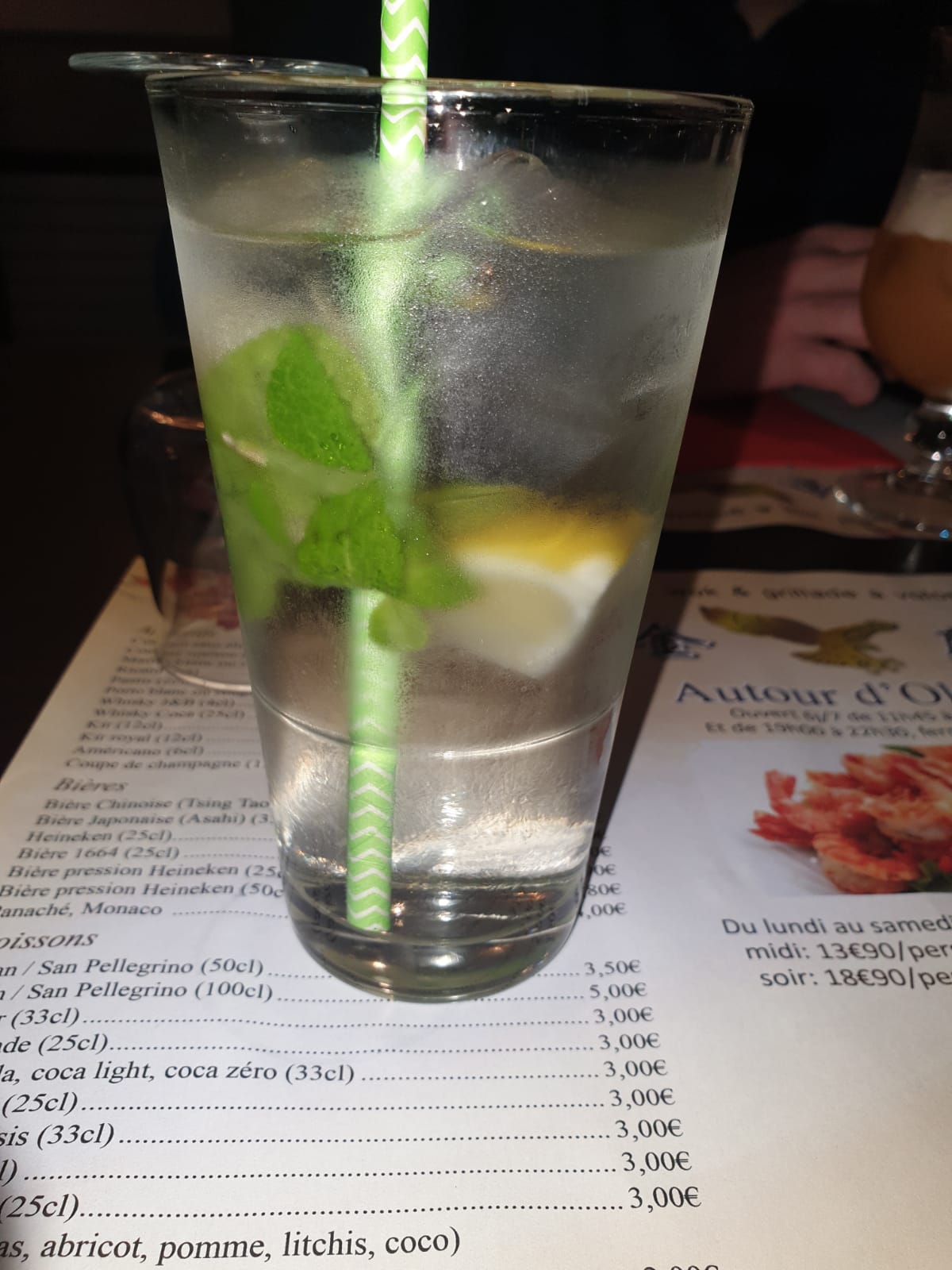 Mojito qui ne ressemble à rien d'autre qu'un verre de vodka avec une feuille de menthe et une tranche de citron. Repas pas frais et douteux, le goût n'y est pas, même dans les choses de bas, la seule choses que nous avons trouvé Excellente, c'est la glace industrielle. La salle était archi vide a notre passage, pas étonnant