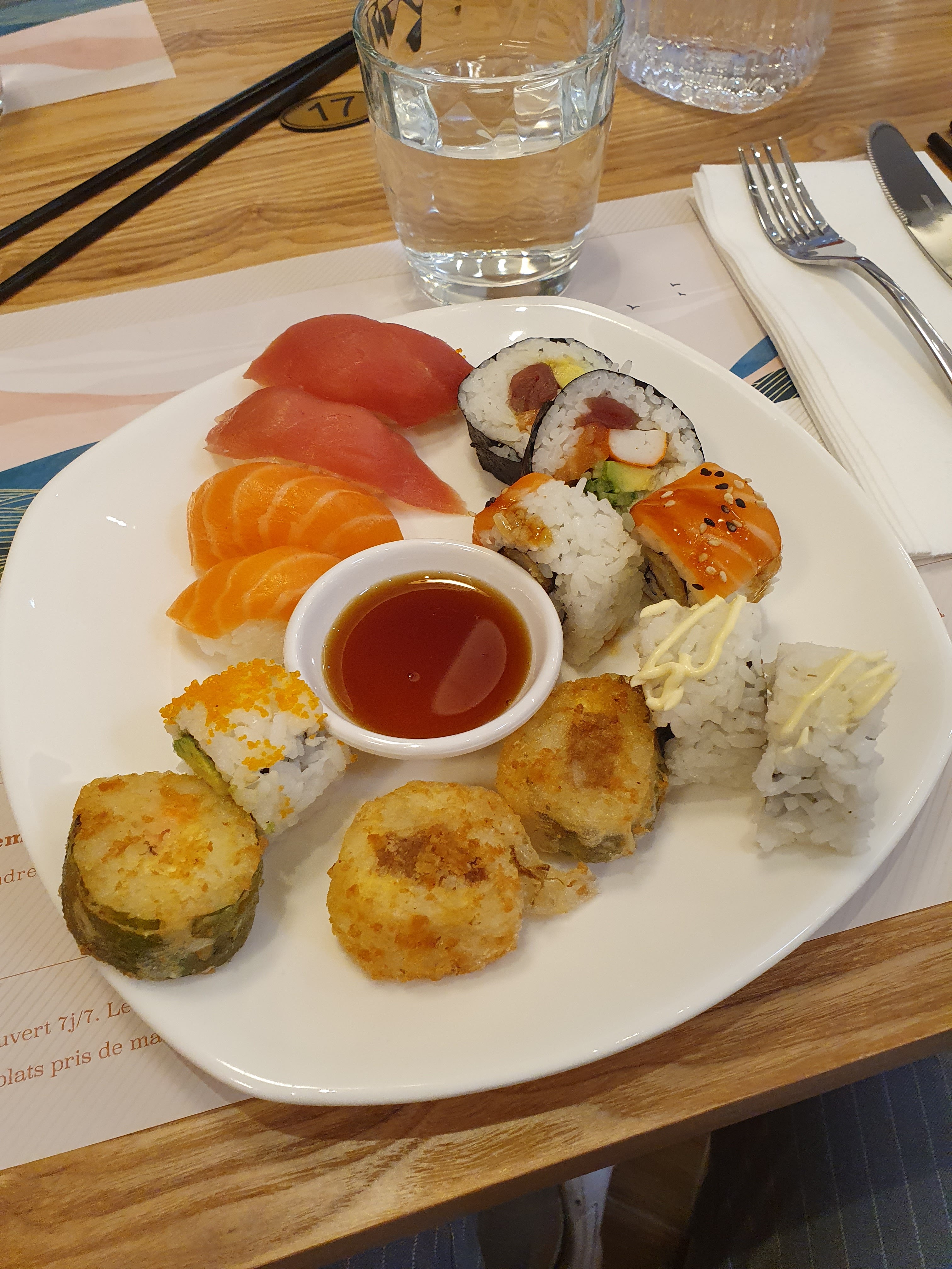 Top. Très frais et bon. Beaucoup de choix. Ne manquez pas les fruits de mer et les makis. Le tiramisu au thé vert aussi une délicieuse découverte. Espérons que la qualité se maintienne dans la durée (le restaurant a ouvert il y a un mois tout juste).