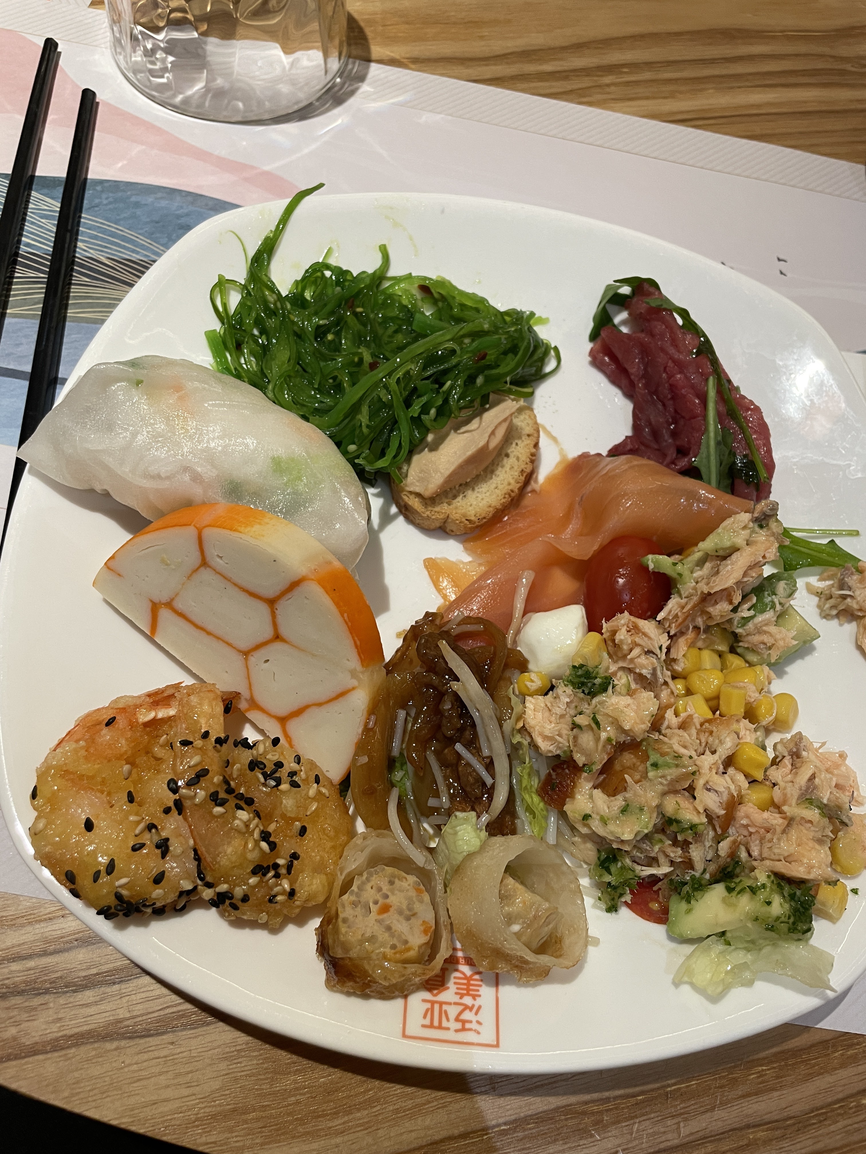 Bonjour. Pas mal du tout pour un buffet à volonté. Le plus c’est qu’il y a des multiples origines de la cuisine en Asie. Juste que c’est très bruyant… salut.