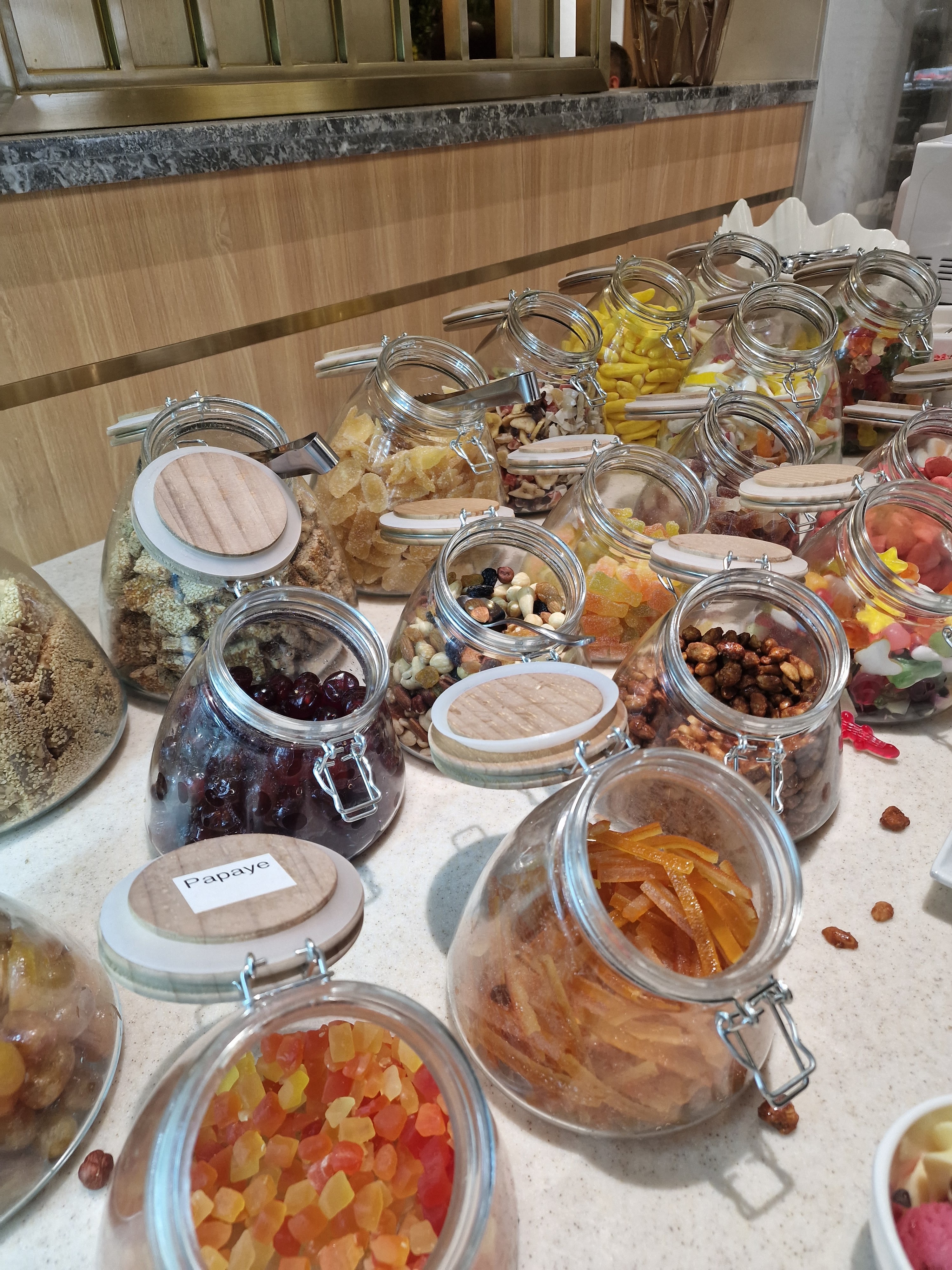le cadre est tres beau, les buffets bien garnis et le personnel souriant et disponible. Seul petit bémol le bruit mais l'établissement est très grand.