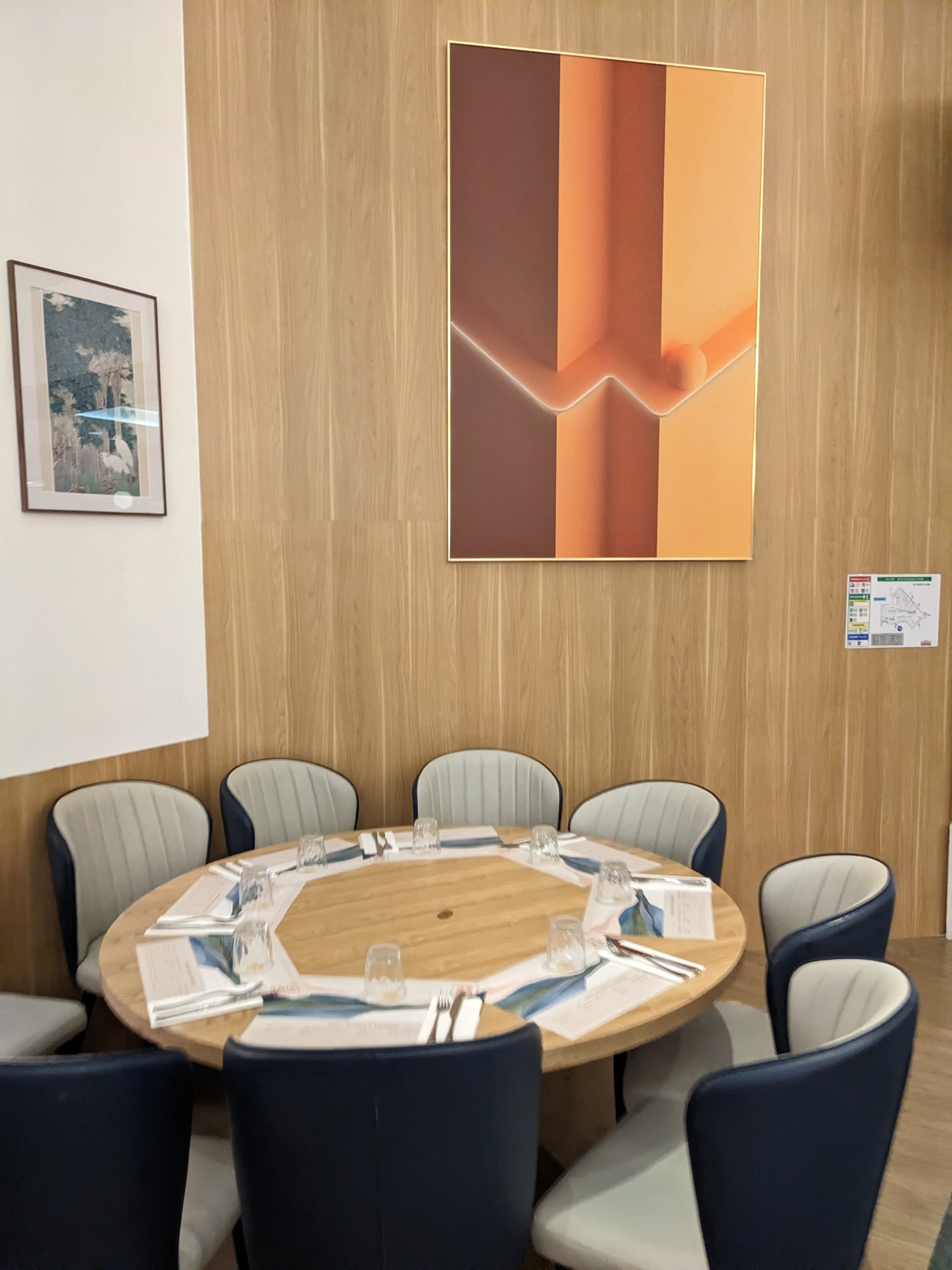 Cadre et déco magnifique Point positif l'espace entre les tables, on est pas collé aux voisins et c'est très agréable Beaucoup beaucoup de choix, Service accueillant Produits bons Pensez a réserver car bcp de monde