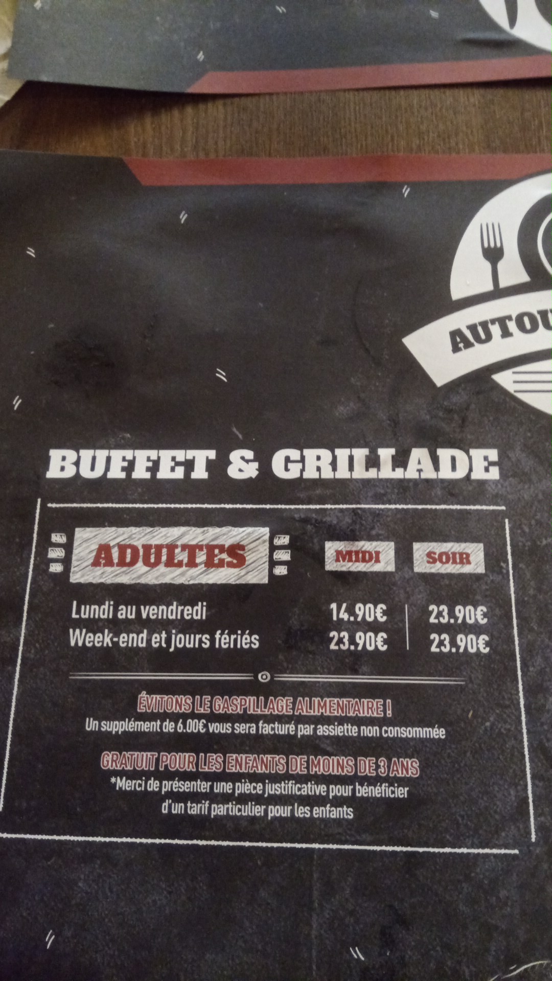 Très grand choix de nourriture. De la bonne viande au grill. Tout est à volonté. Quantité+ qualité+bon accueil, le tout pour 14 euros la semaine et 19 le weekend : que dire de plus ?