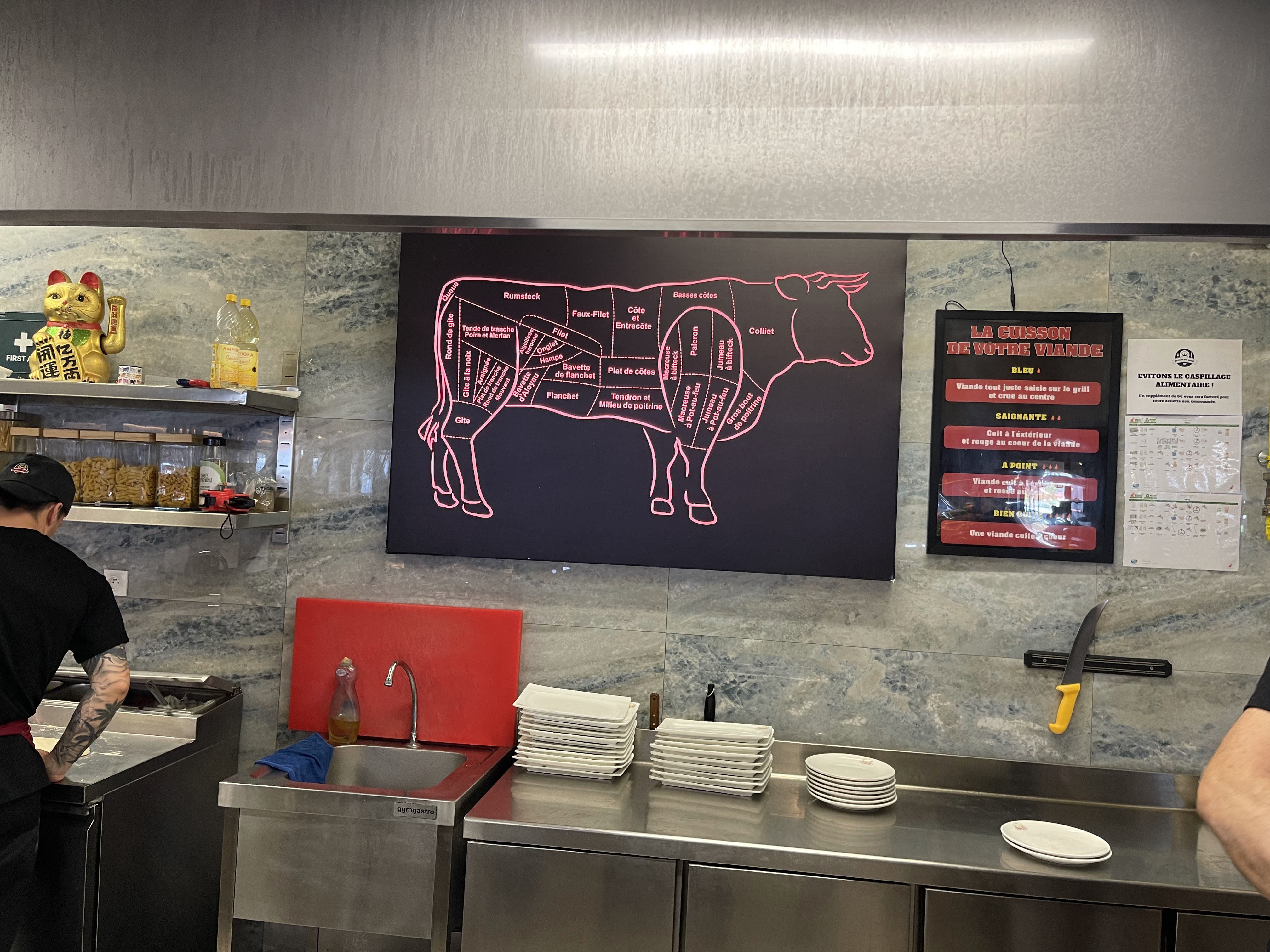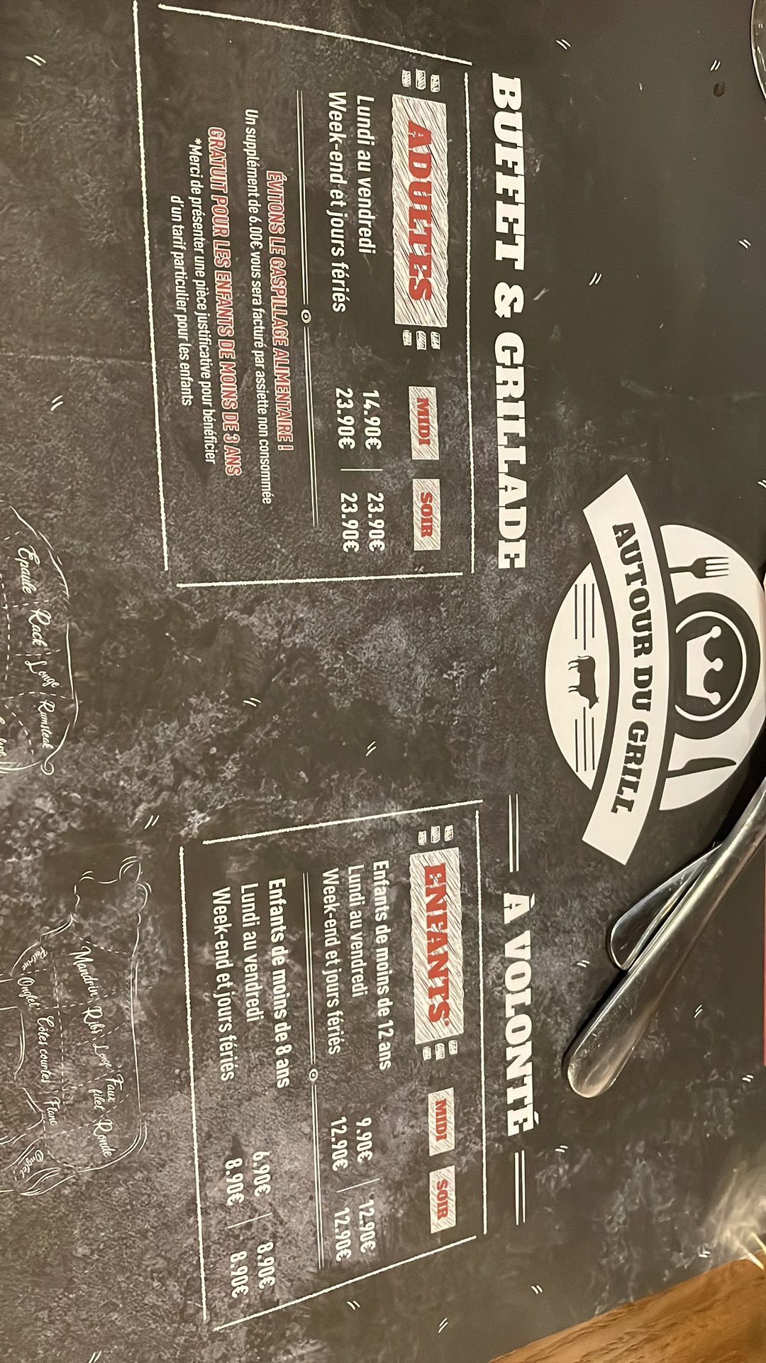 Beaucoup de choix! Le prix le midi en semaine est concurrentiel (moins de 16€) donc si vous avez faim, n'hésitez pas! En revanche, en comparant avec son concurrent Sir Lam, qui est beaucoup plus cher, la qualité est moindre. Autour du Grill reste un restaurant asiatique avec en plus la possibilité de choisir sa viande pour faire griller, et quelques plats non asiatiques (pizza, hamburger, poulet cuisiné à la française...). Le concept est pas mal mais j'ai été déçue qu'il y ait quasiment autant de plats asiatiques que de plats français. D'autant plus que les desserts ne sont pas franchement d'une grande qualité. On sent le surgelé pas très cher. Du coup, pour ceux qui aiment manger varié (asiat' & autres), je recommande, surtout le midi, vous en avez pour votre argent. Mais le soir, faite plutôt un vrai restaurant asiatique ou un vrai bistrot.