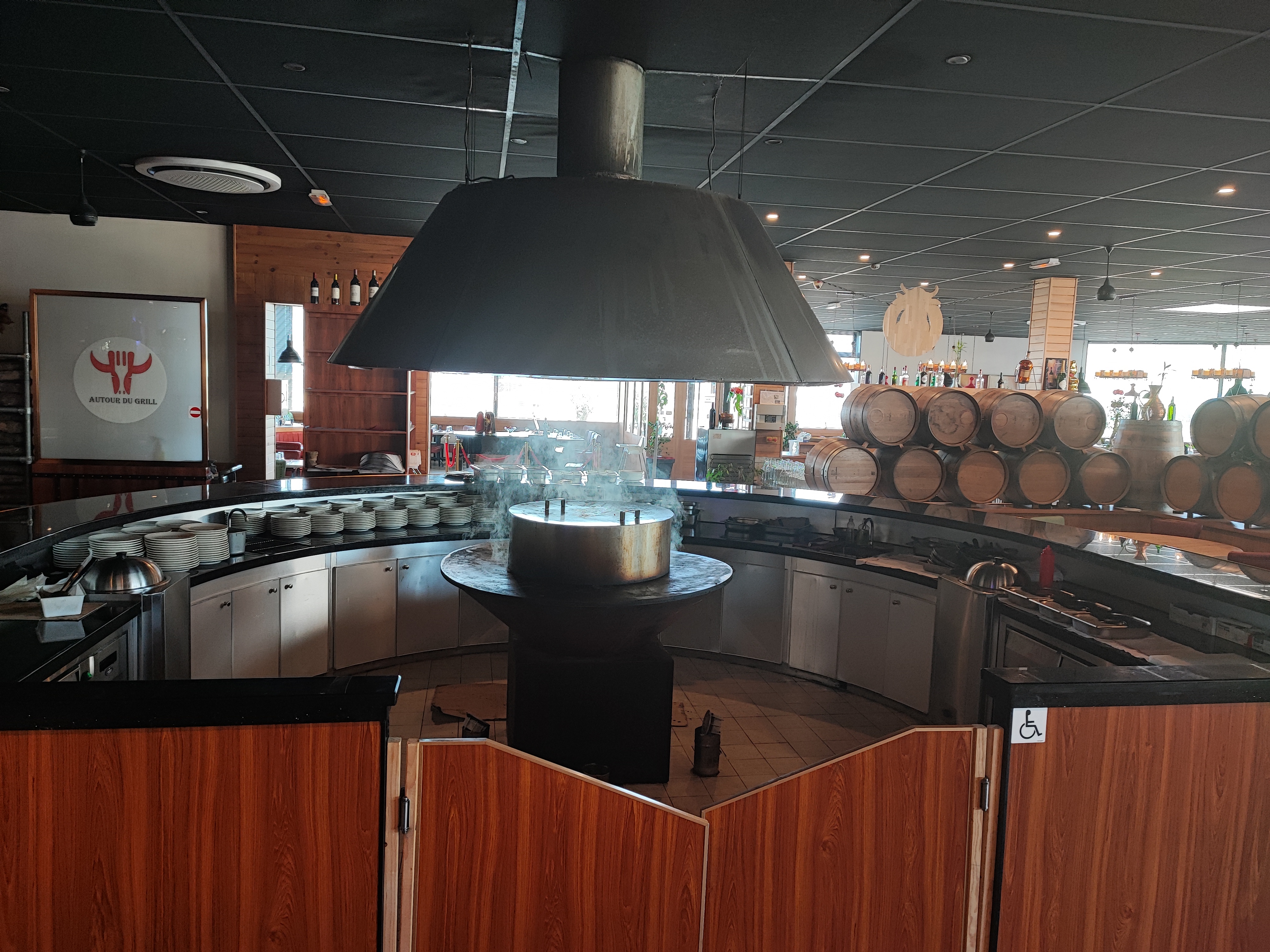Superbe pour une première....ce concept a savoir buffet a volonté pour les entrées, les accompagnements Pour les viandes les poissons les crevettes merguez etc....aussi a volonté vs êtes servis a table après avoir été cuits au feu de bois sur un brasero Attention aux cuissons pour la côte de bœuf Service au top personnels courtois et professionnels