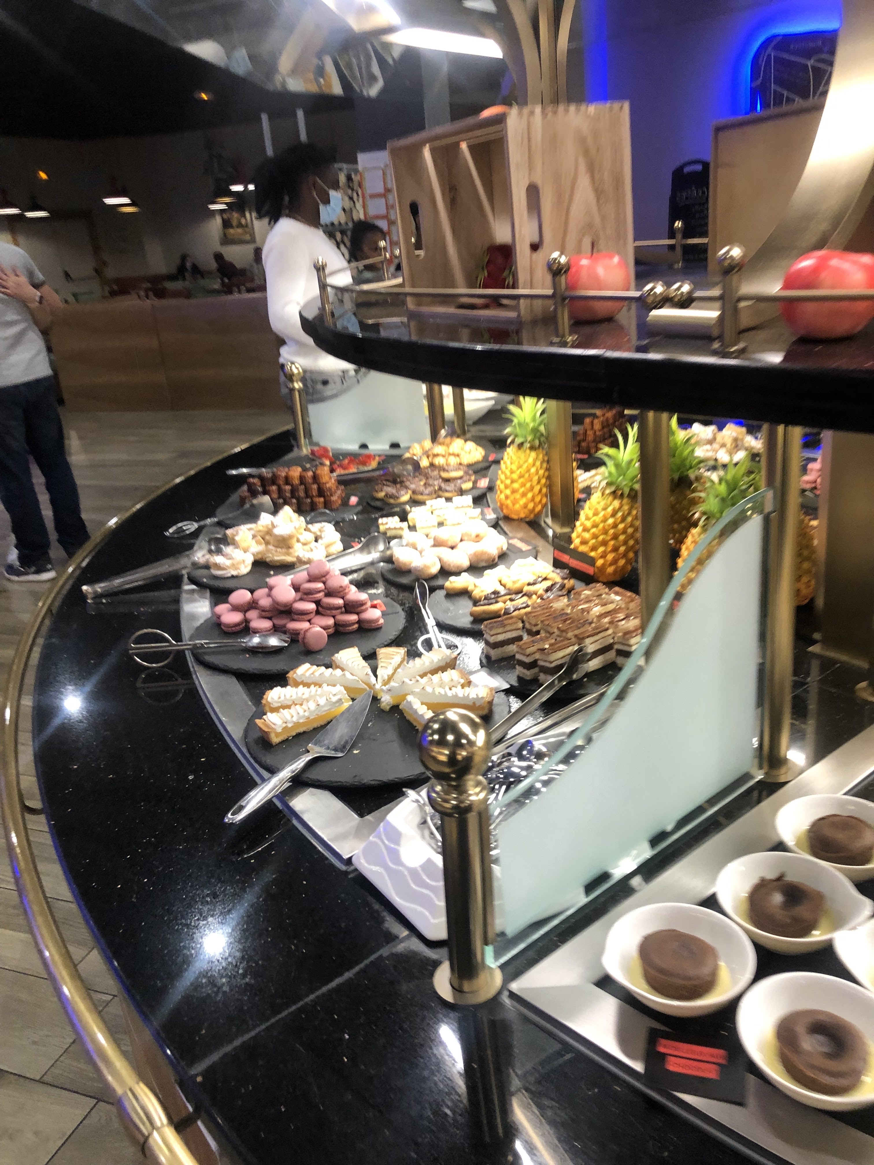 Très grand choix sur tout les buffets. Le mode de commande des plats principaux bien rodé. Accueil super sympa. Je recommande sans problème.