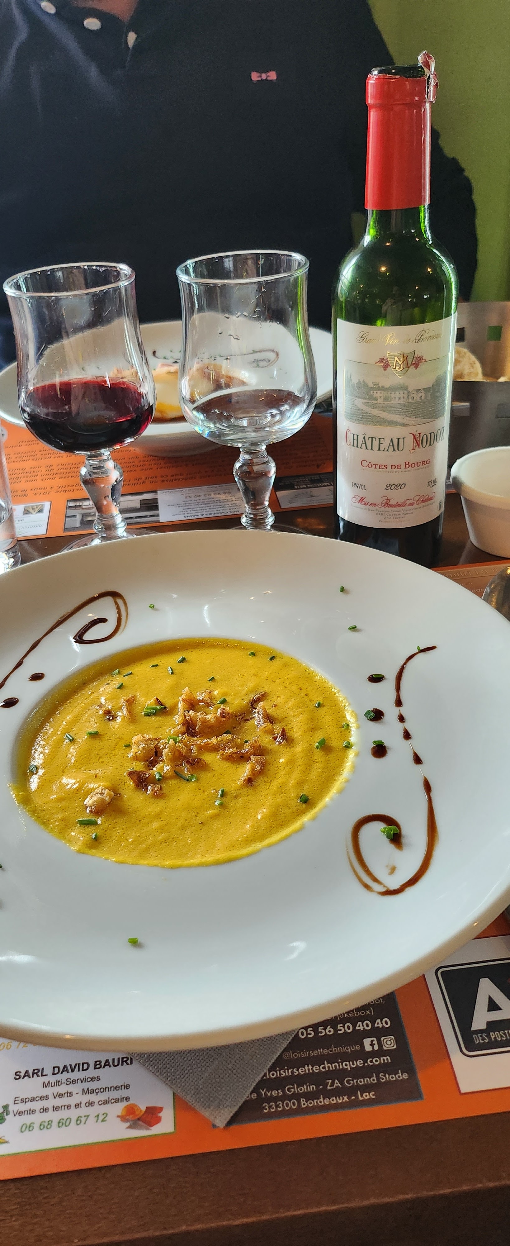Je ne sais pas si c’est mon côté chat noir mais nous avons eu droit à une accumulation de petits pépins , erreur de cuisson , sauce échalote à la place de roquefort, frites limites cuites , dépôt dans la bouteille de Pessa-Léognan (2019) et dessert maison sans plus , mais nous restons positifs le personnels a été agréable , dommage pas de petit geste commercial (café offert 🤪)